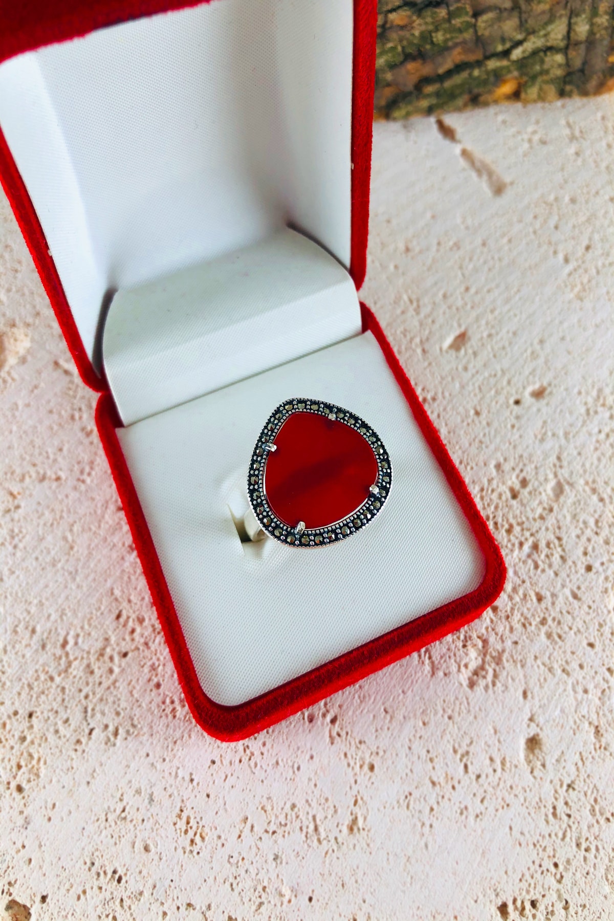 Kırmızı Akik Taşlı Gümüş Yüzük Kırmızı Akik Taşlı Gümüş Yüzük Y-10300149 26