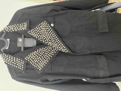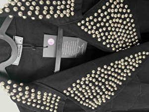 Kemerli Yakası Taşlı Uzun Kot Ceket Kemerli Yakası Taşlı Uzun Kot Ceket uzunkotceket L