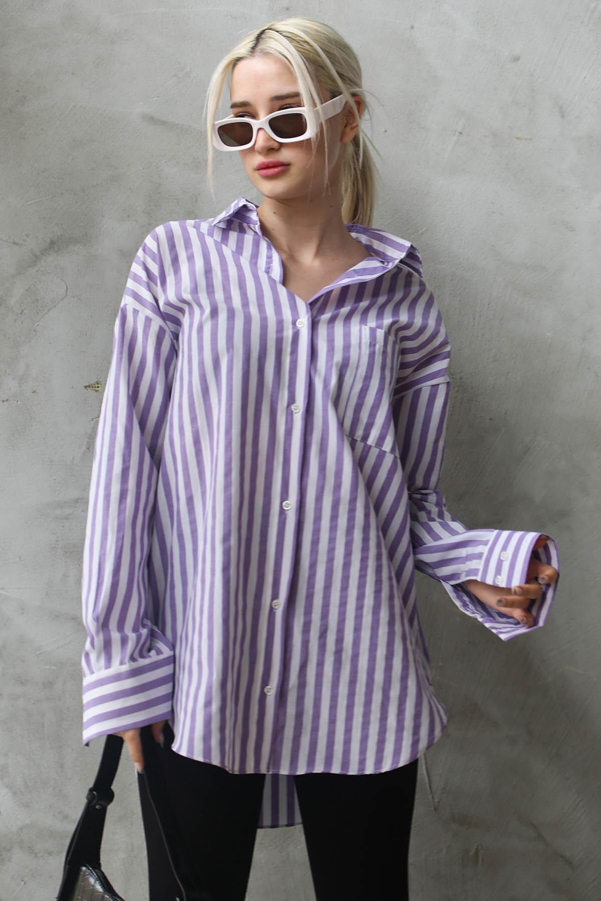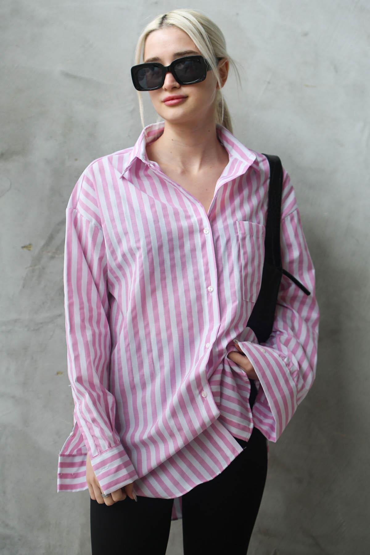 Antrasit Çizgili Oversize Kadın Gömlek Mg1688 Antrasit Çizgili Oversize Kadın Gömlek Mg1688 MG1688 L
