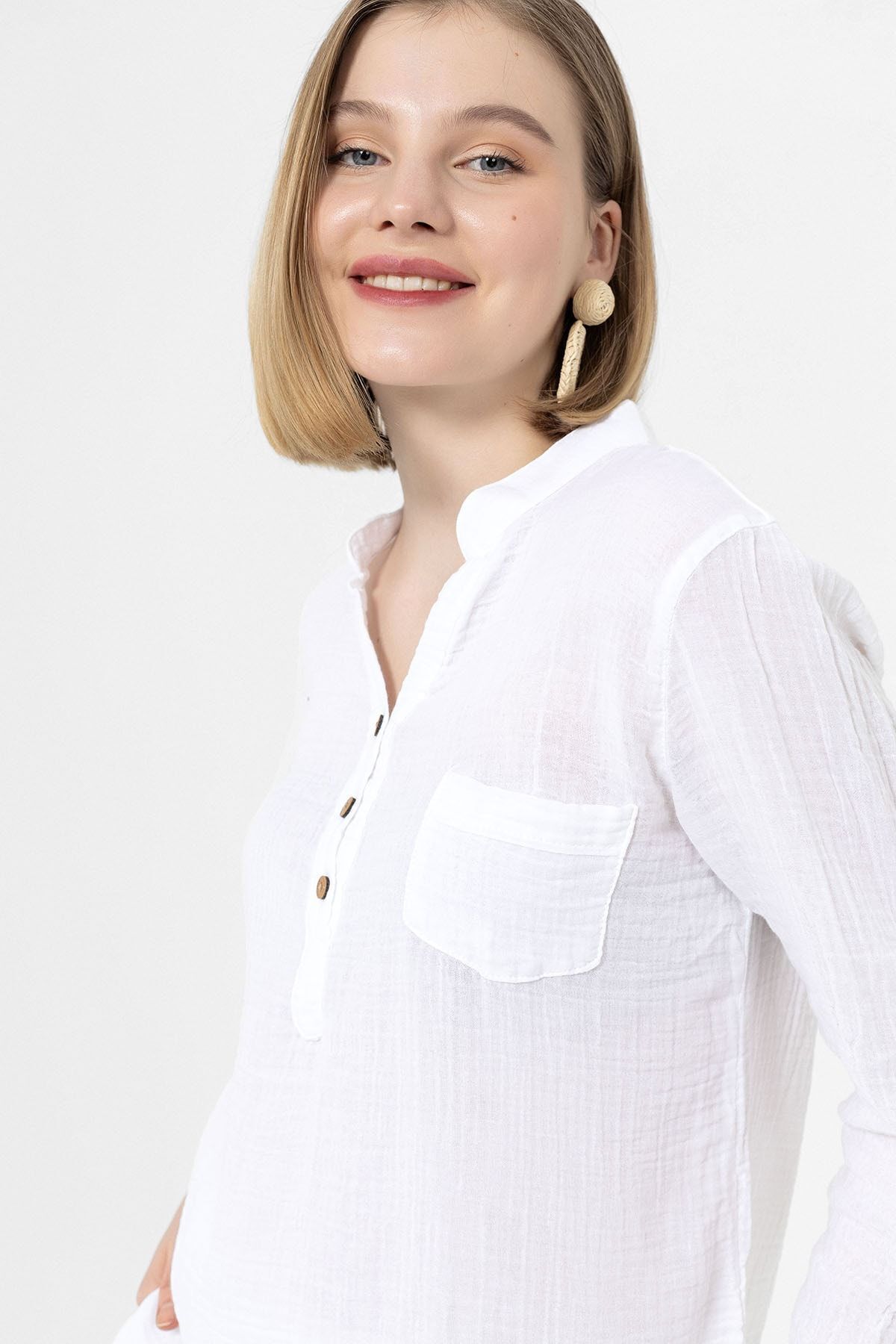 Hakim Yaka Uzun Kollu Yarım Patlı Müslin Kadın Gömlek - 1100 Hakim Yaka Uzun Kollu Yarım Patlı Müslin Kadın Gömlek - 1100 HYUKYPMG 3XL