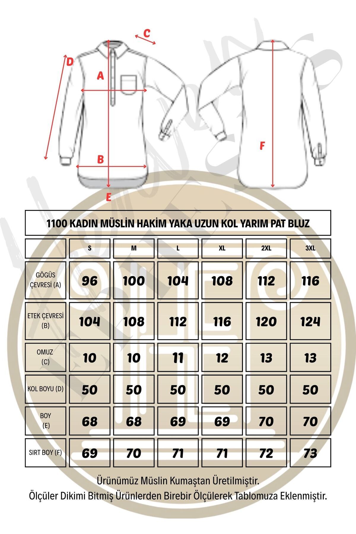Hakim Yaka Uzun Kollu Yarım Patlı Müslin Kadın Gömlek - 1100 Hakim Yaka Uzun Kollu Yarım Patlı Müslin Kadın Gömlek - 1100 HYUKYPMG 3XL