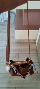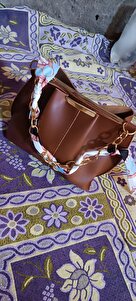 مشخصات فنی Kadın Fularlı Zincir Aksesuarlı Yumuşak Deri 3 Bölmeli El Kol Ve Omuz Çantası