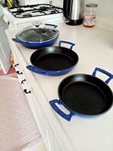 Cam Kapaklı 3'li Mavi Sahan Seti (16 Cm - 20 Cm-24cm) Cam Kapaklı 3'li Mavi Sahan Seti (16 Cm - 20 Cm-24cm) Lava Sahan 3'li Set تک سایز