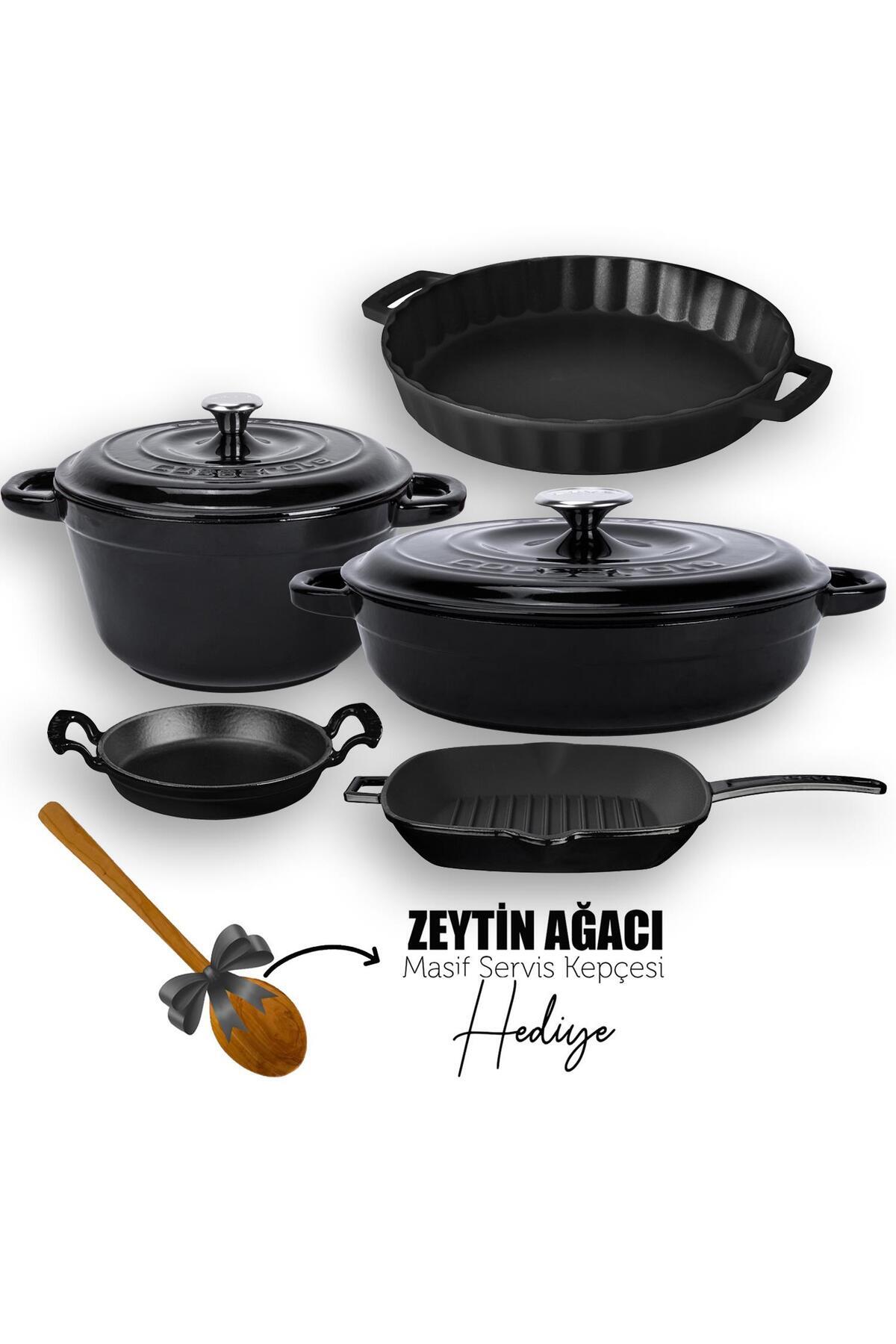 Döküm 5x New Heritage Serisi Döküm Demir Tencere & Tava Seti Döküm 5x New Heritage Serisi Döküm Demir Tencere & Tava Seti LV S NHR 5X GT SET تک سایز