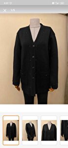 Boncuklu Triko Şık Desenli Anne Hırkası Inci Detaylı / Siyah Boncuklu Triko Şık Desenli Anne Hırkası Inci Detaylı / Siyah TKTR-2025 3XL