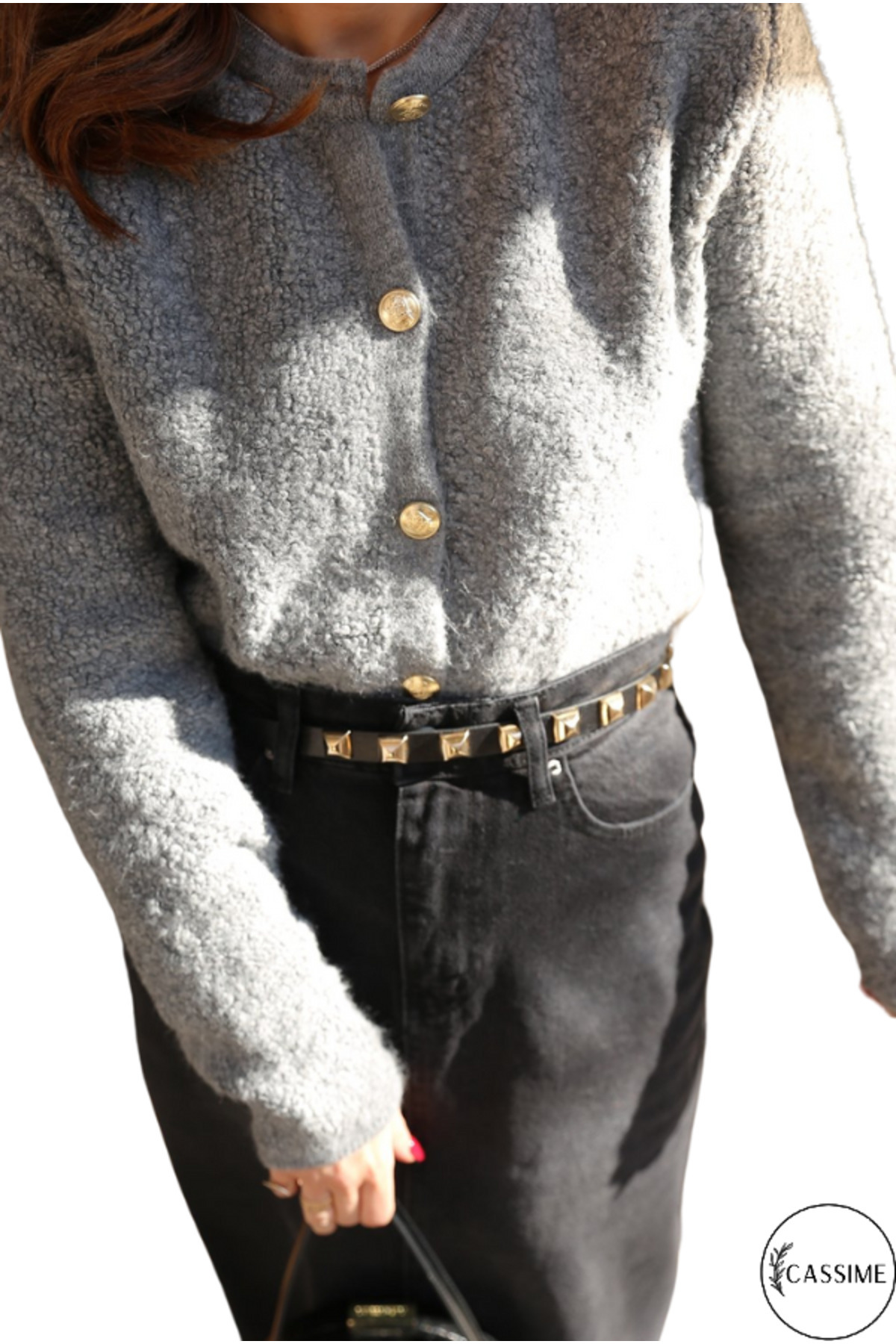 Kadın Model Gri Bisiklet Yaka Gold Düğmeli Hırka Kadın Model Gri Bisiklet Yaka Gold Düğmeli Hırka MHRK107 Standart
