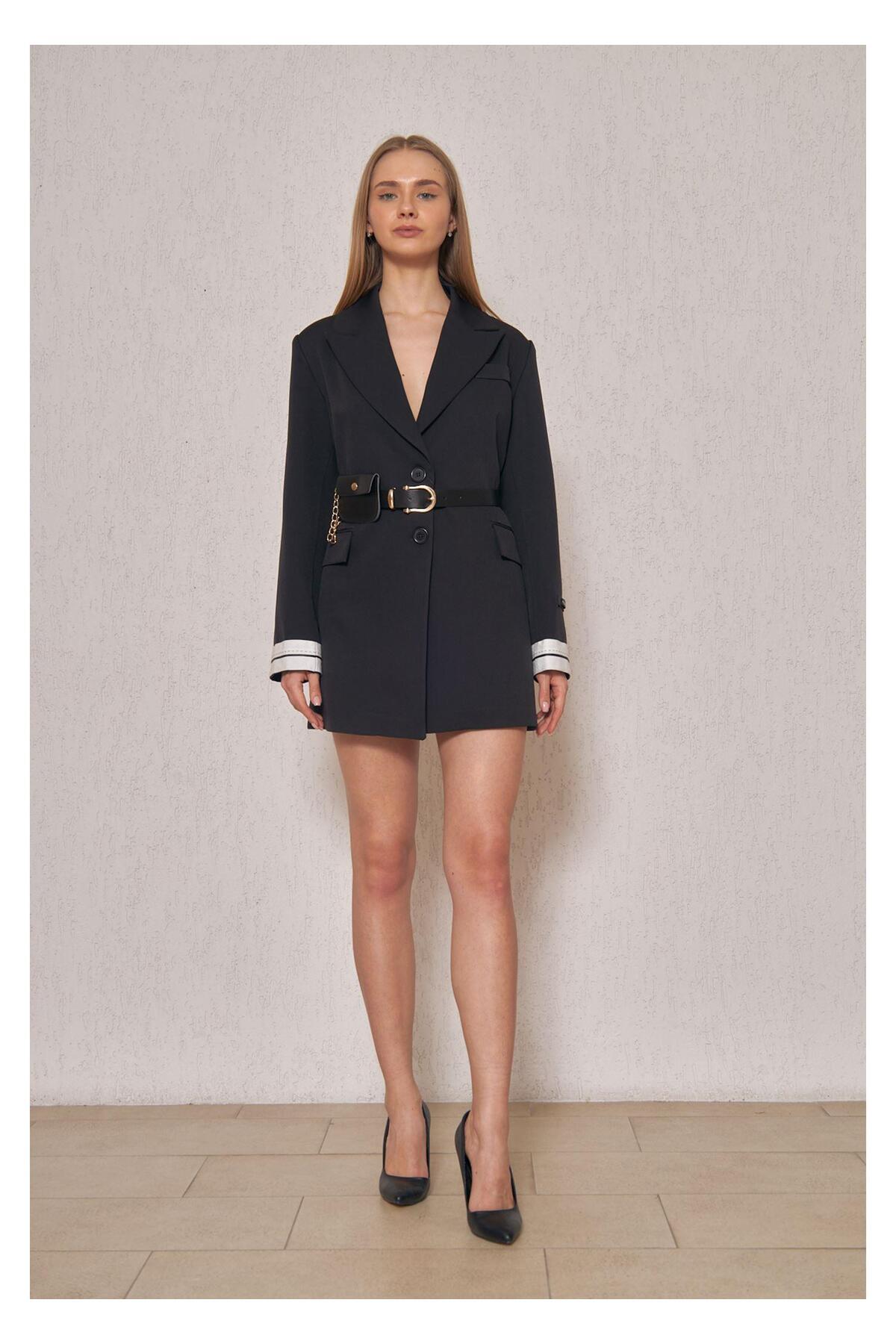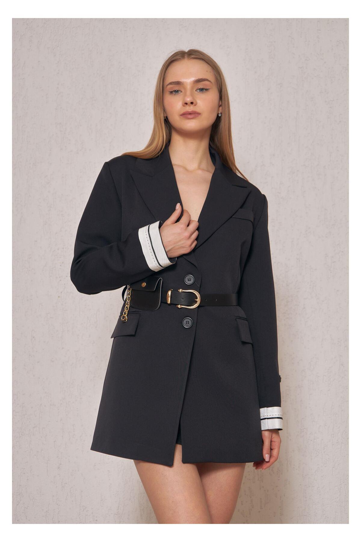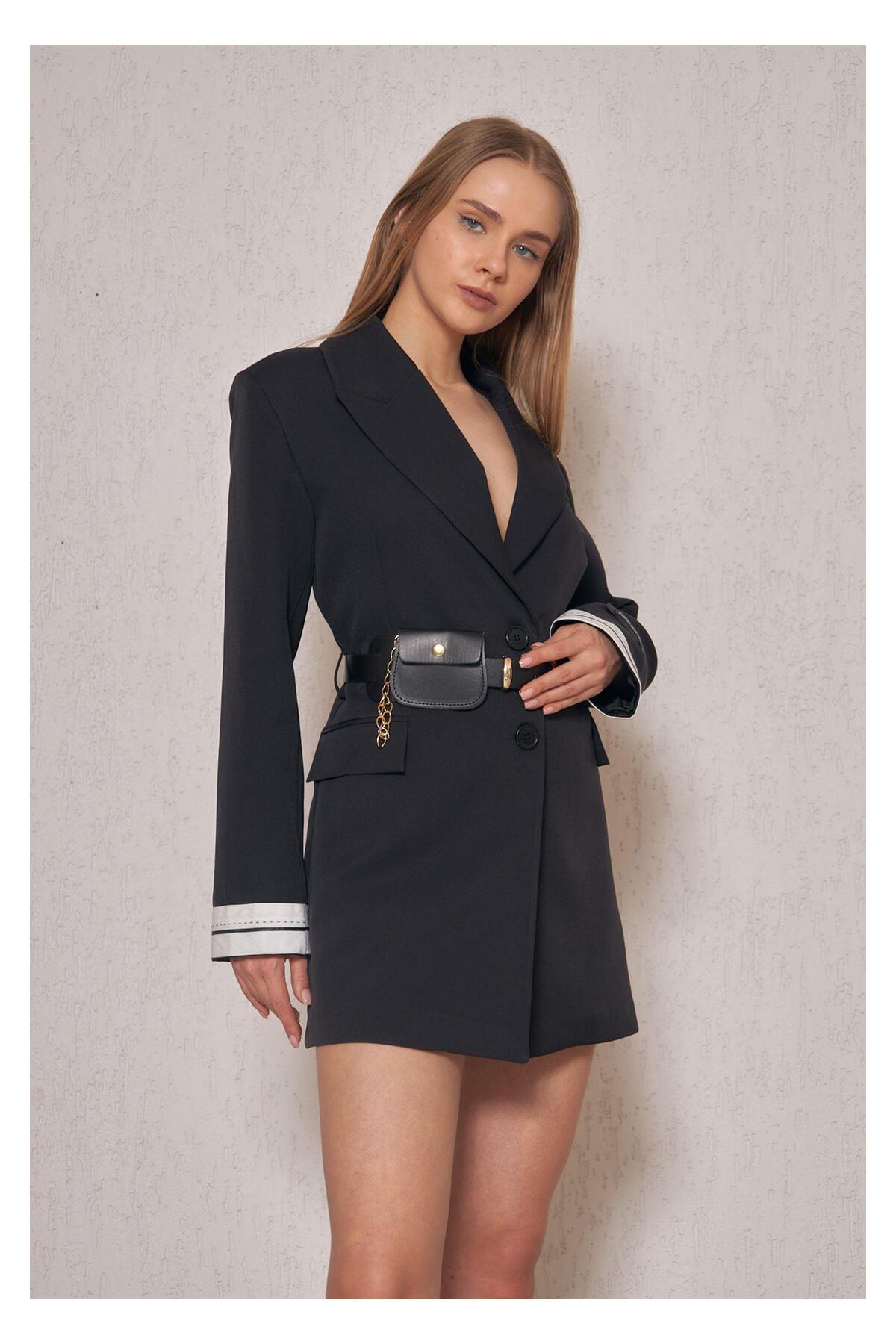 Kol Ağzı Garnili Kemerli Atlas Ceket Kol Ağzı Garnili Kemerli Atlas Ceket CKT0058Y XL