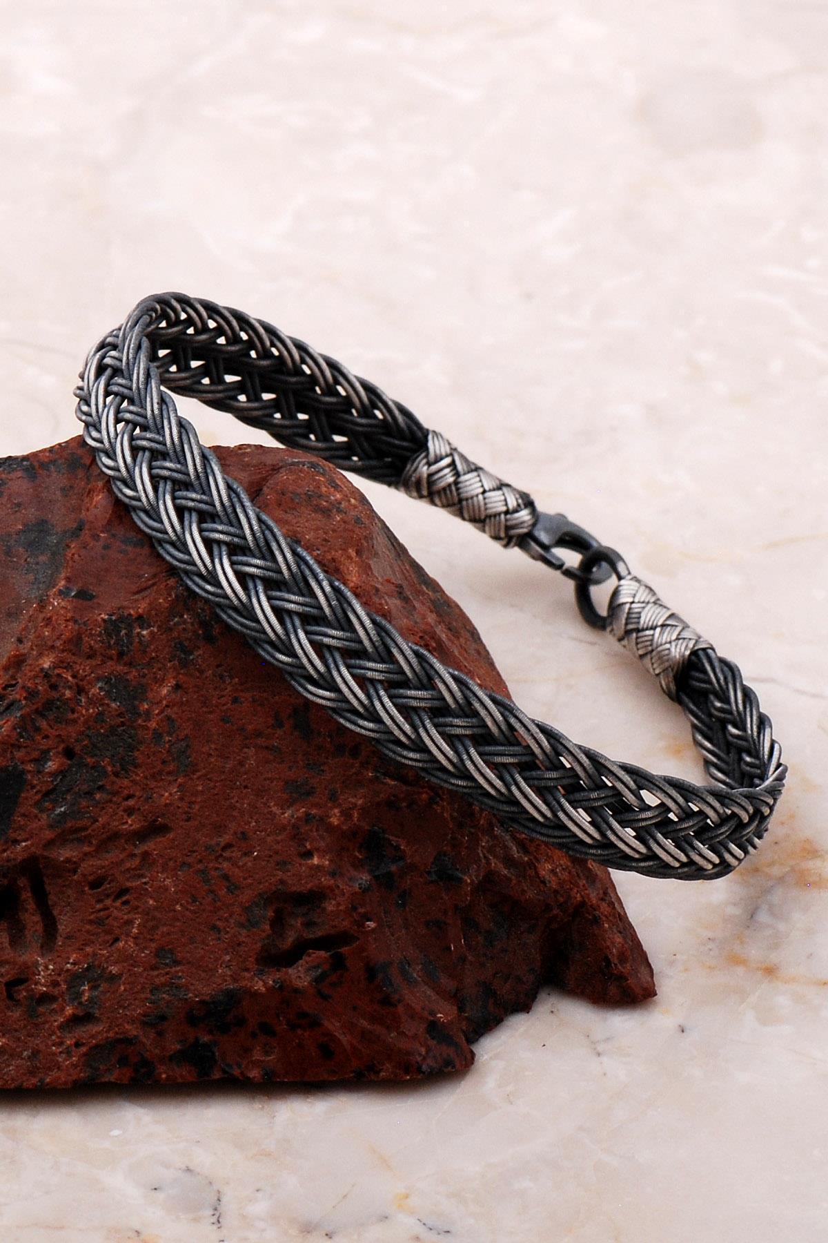 Kazaziye Işlemeli 19,5 Cm Örgü Gümüş Erkek Bileklik 4277 Kazaziye Işlemeli 19,5 Cm Örgü Gümüş Erkek Bileklik 4277 MBL4277 تک سایز