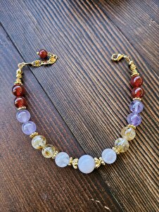 Akik Taşı, Ametist, Sitrin Ve Pembe Kuvars Taşı Bileklik Akik Taşı, Ametist, Sitrin Ve Pembe Kuvars Taşı Bileklik 300669 18 cm