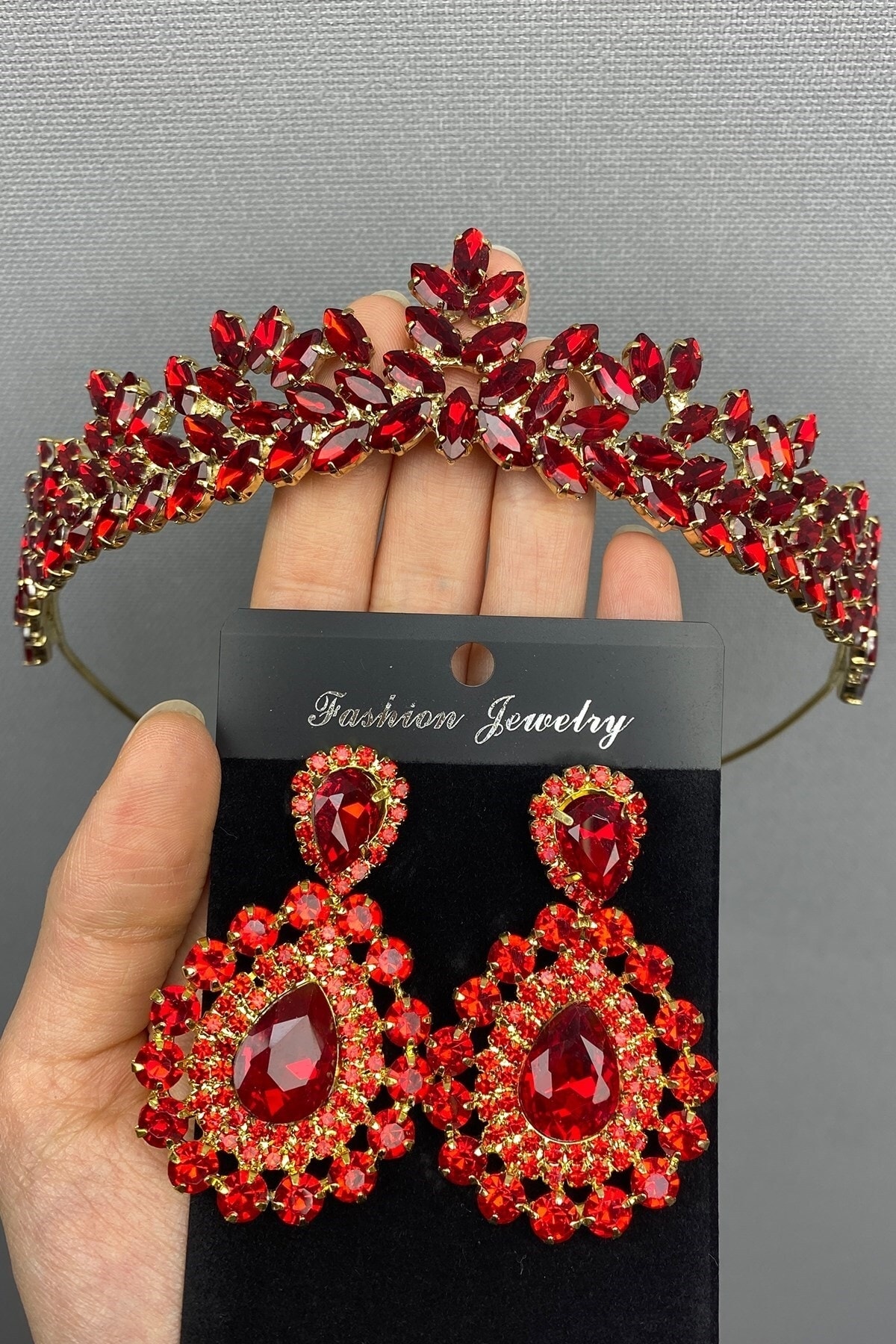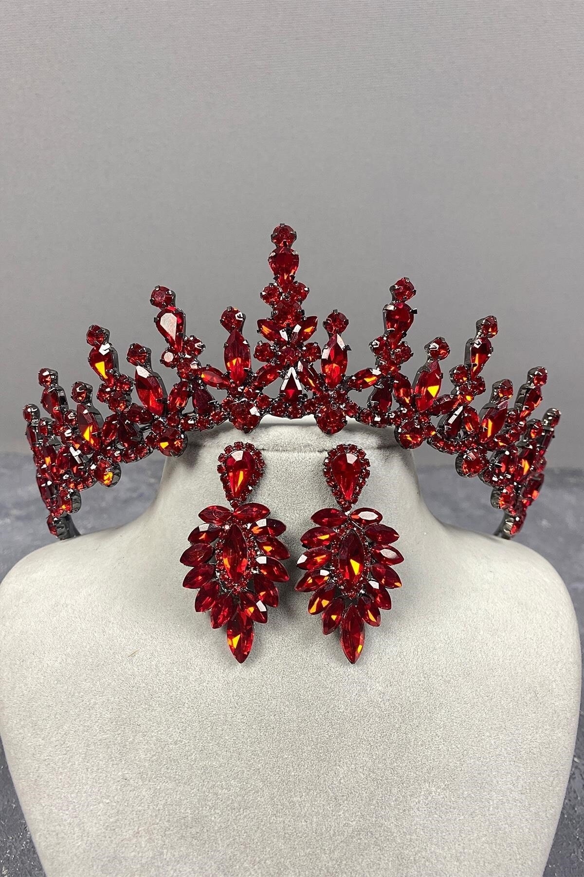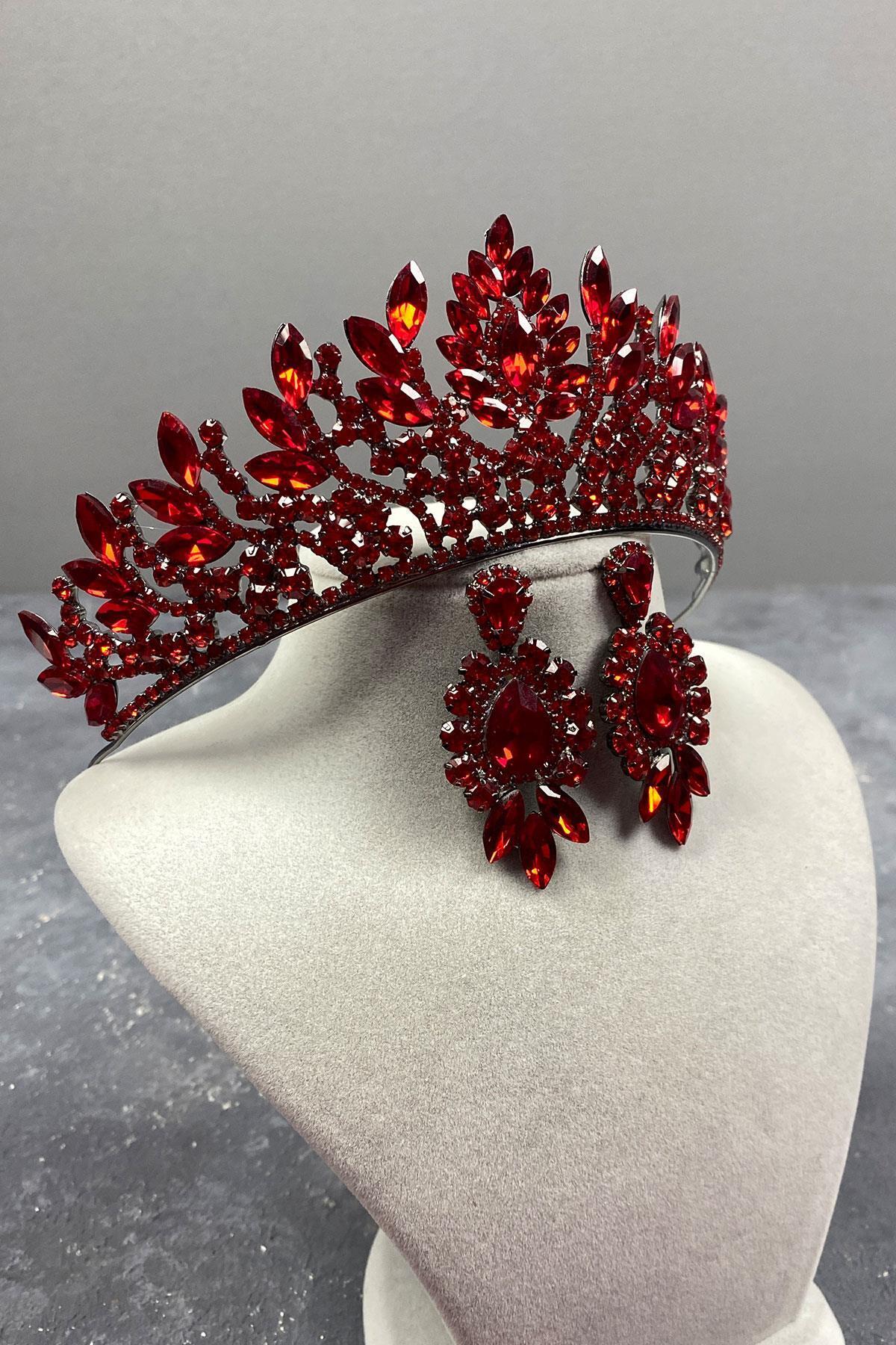 Kırmızı Danver Taşlı Gelin Kına Tacı Ve Abiye Küpe Seti Kırmızı Danver Taşlı Gelin Kına Tacı Ve Abiye Küpe Seti TXCB57F6A919248 تک سایز