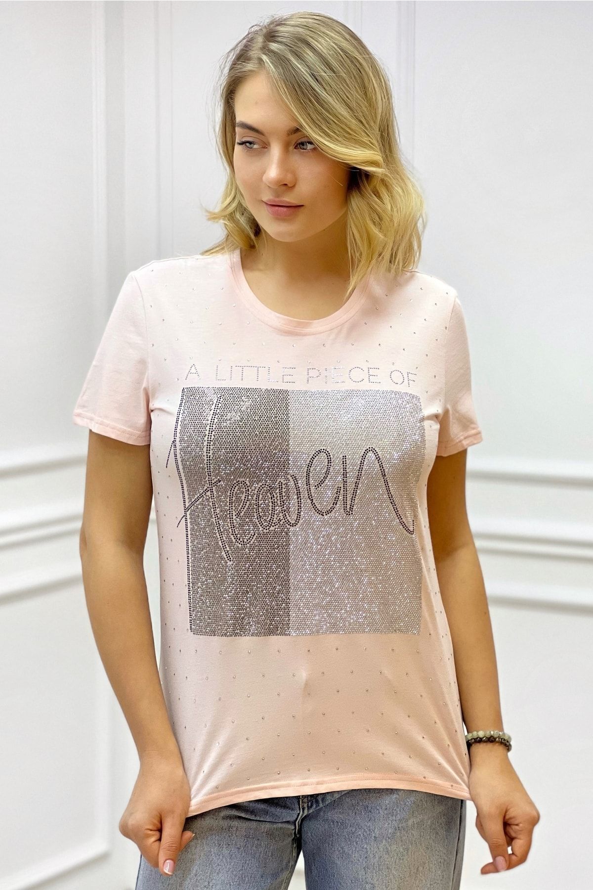 Heaven Crystal Taşlı Büyük Beden Bisiklet Yaka Pamuk Kadın T-shirt L Xl 2xl 3xl Heaven Crystal Taşlı Büyük Beden Bisiklet Yaka Pamuk Kadın T-shirt L Xl 2xl 3xl 765 3XL