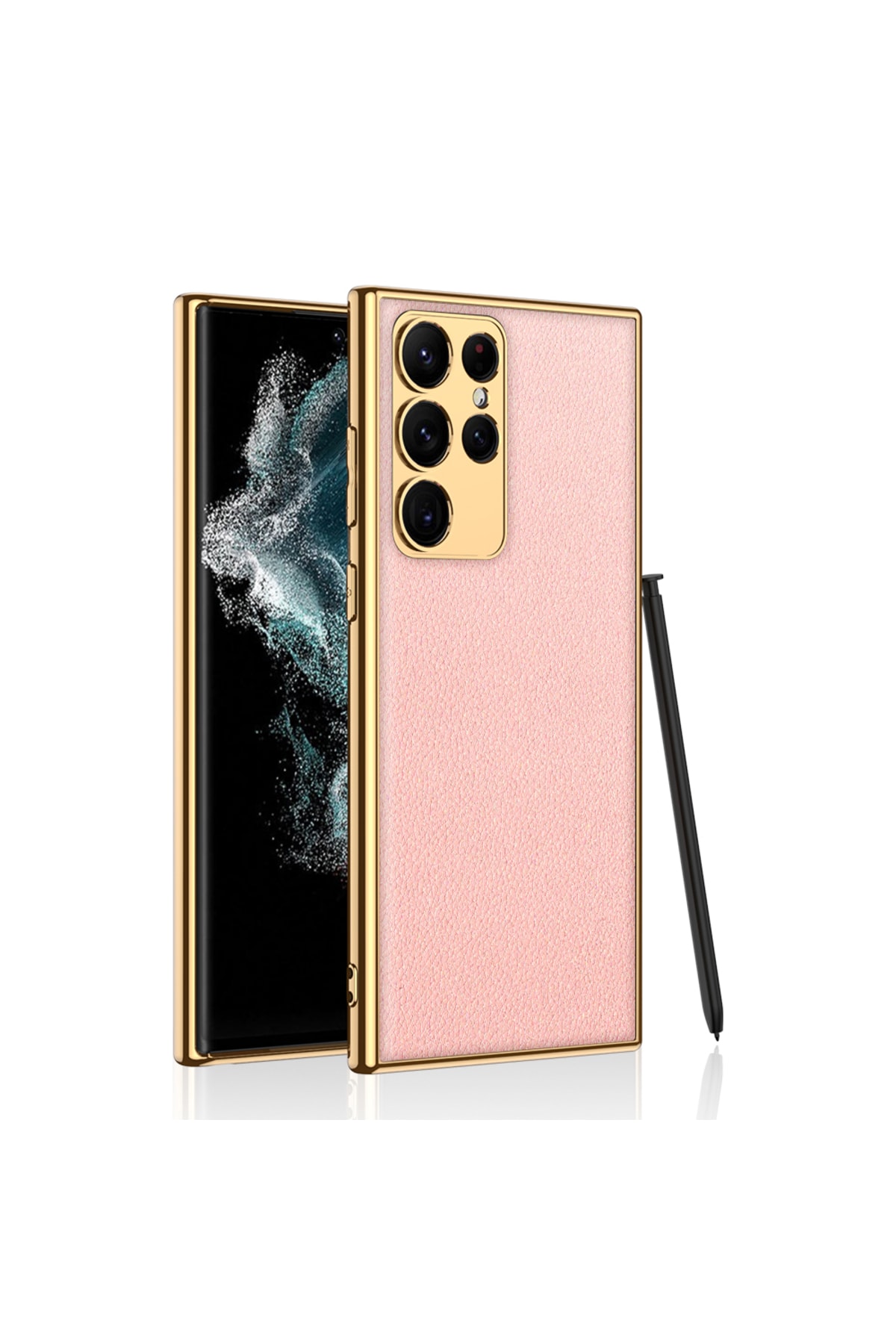 Samsung Galaxy S23 Ultra Uyumlu Deri Görünümlü Kenarları Elektroplating Kaplama Kapak Kılıf Samsung Galaxy S23 Ultra Uyumlu Deri Görünümlü Kenarları Elektroplating Kaplama Kapak Kılıf NZHTEK-KPK-KLF-FİZYON-0001 تک سایز