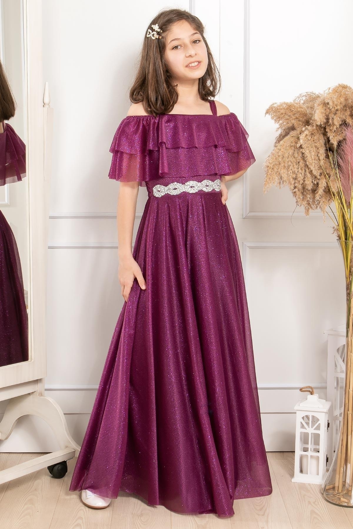Fırfır Detaylı Simli Tül Çocuk Abiye Mürdüm MDV314 Fırfır Detaylı Simli Tül Çocuk Abiye Mürdüm MDV314 15-16 Yaş