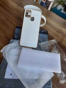 Samsung Galaxy A21s Için Inci Beyazı Kenarları Gold Detaylı Lüks Silikon Kılıf Samsung Galaxy A21s Için Inci Beyazı Kenarları Gold Detaylı Lüks Silikon Kılıf OUEA21S-MLY093 تک سایز