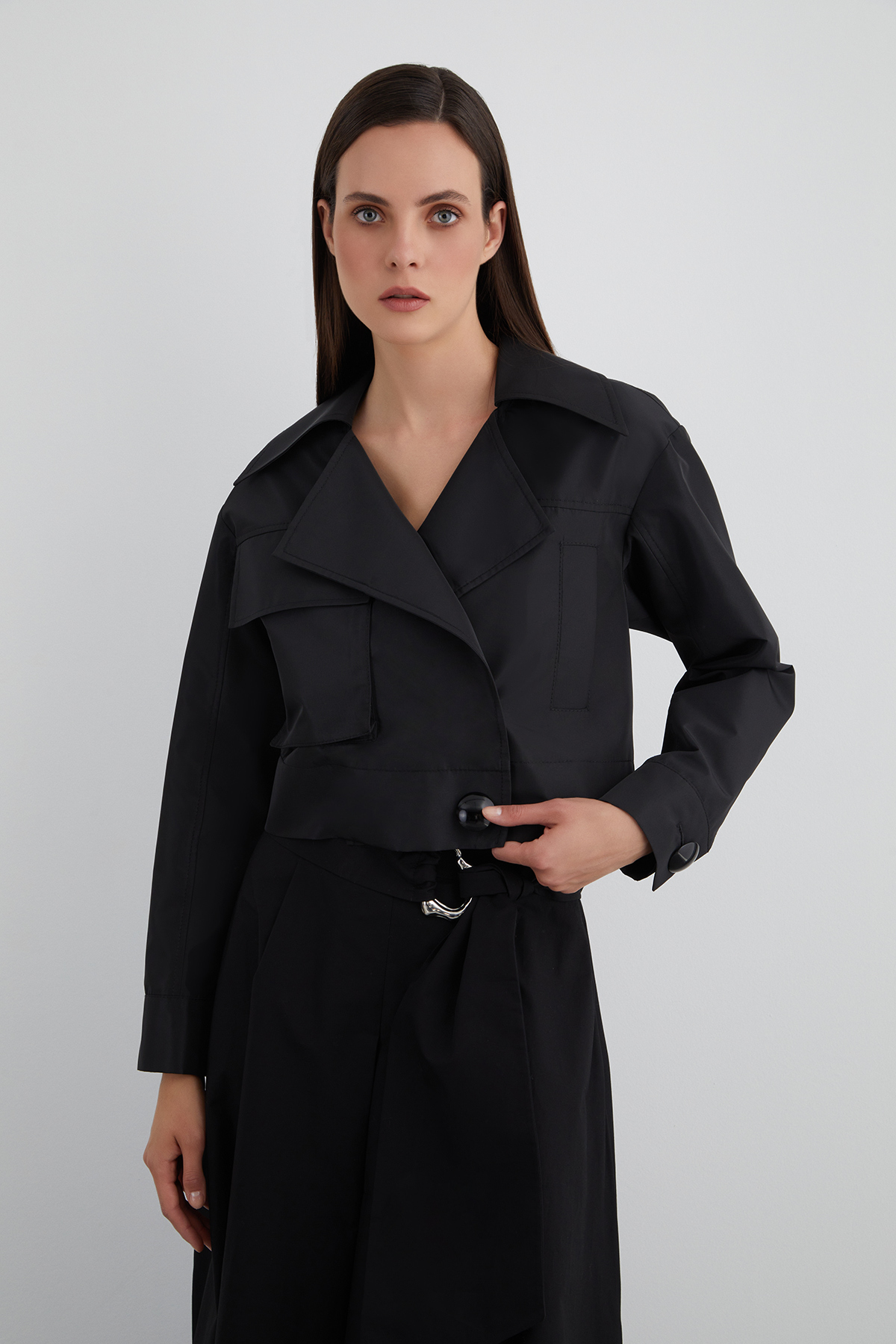 Omuz Detaylı Kruveze Kapamalı Siyah Işlemeli Ceket Omuz Detaylı Kruveze Kapamalı Siyah Işlemeli Ceket M3YM4H0291 46
