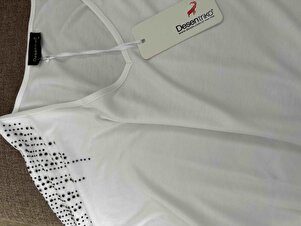 Kadın V Yaka Omuzları Taşlı Penye T-shirt Beyaz Kadın V Yaka Omuzları Taşlı Penye T-shirt Beyaz 23455 XL