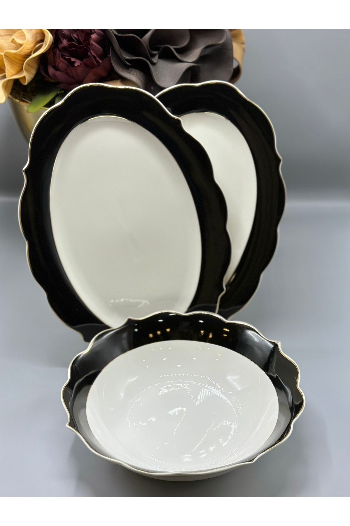 Lüx 3 Lü Porselen Sunum Seti-3 Parça Sunum Servis Seti Siyah Lüx 3 Lü Porselen Sunum Seti-3 Parça Sunum Servis Seti Siyah CZM1383 تک سایز