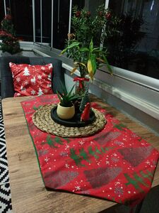Yılbaşı Özel Desenli Kırmızı Yeşil Runner Yılbaşı Özel Desenli Kırmızı Yeşil Runner 05EVAA0004 تک سایز