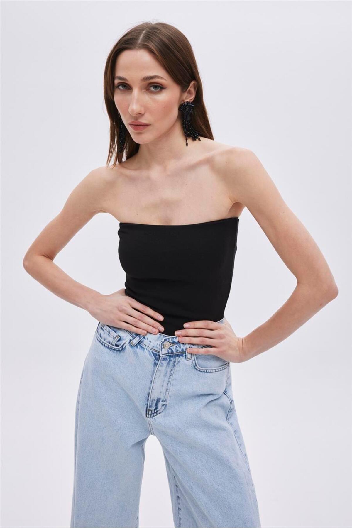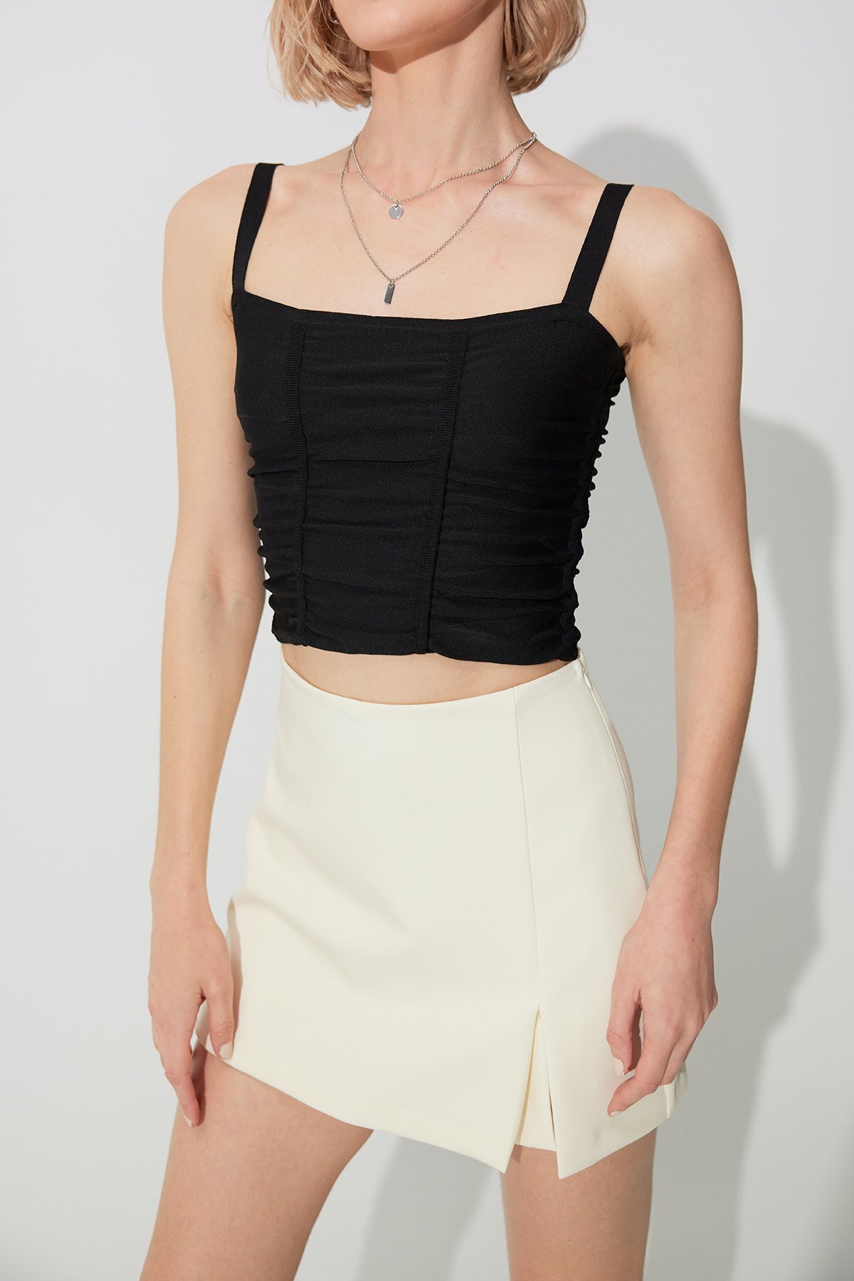 Siyah Büzgülü Kare Yaka Triko Atlet Siyah Büzgülü Kare Yaka Triko Atlet SWA4641 L