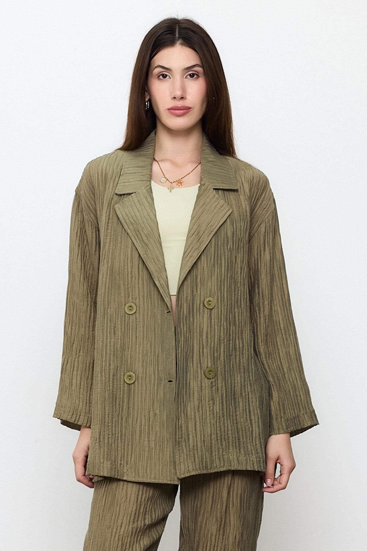 Bej 4 Düğmeli Kruvaze Yaka Blazer Ceket Bej 4 Düğmeli Kruvaze Yaka Blazer Ceket SS23J4708 L