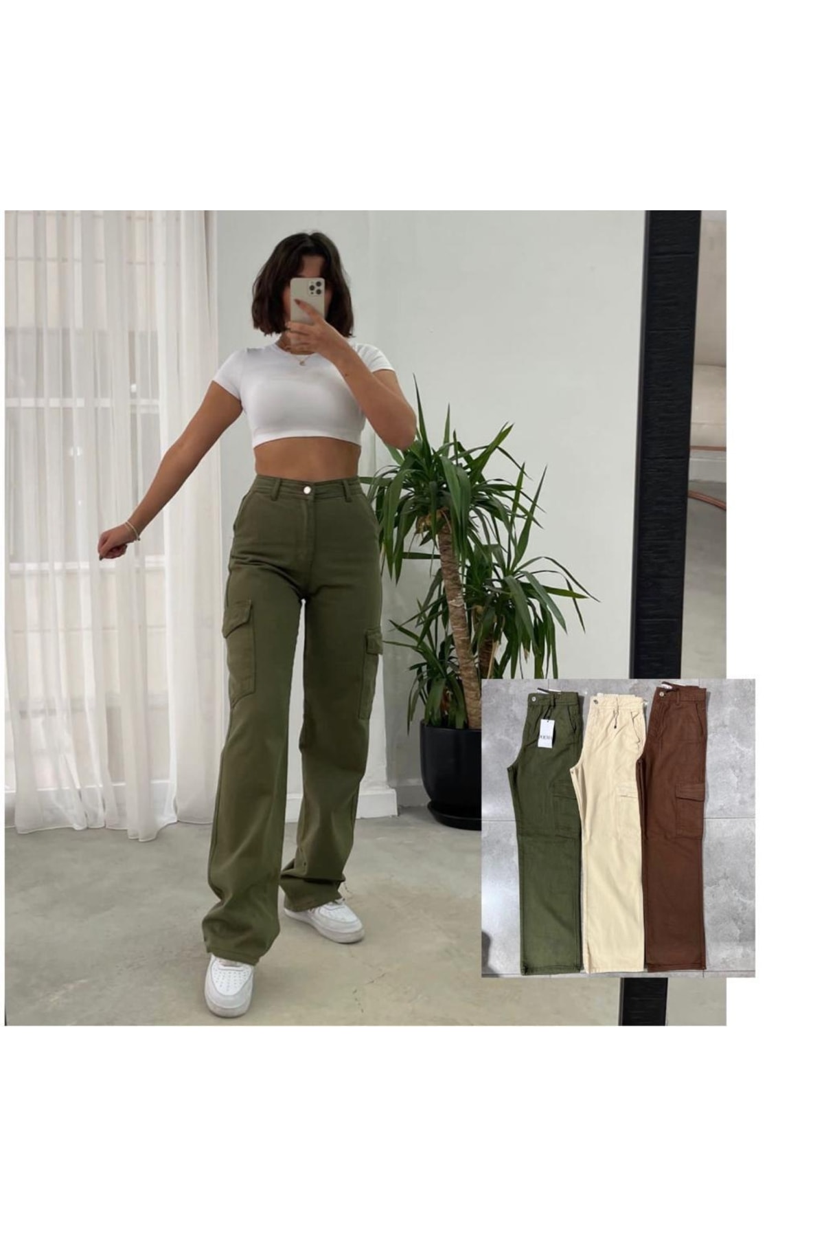 Süper Yüksek Bel Likralı Haki Kargo Cep Wide Leg Jean Pantolon Süper Yüksek Bel Likralı Haki Kargo Cep Wide Leg Jean Pantolon Kargo palazzo 42