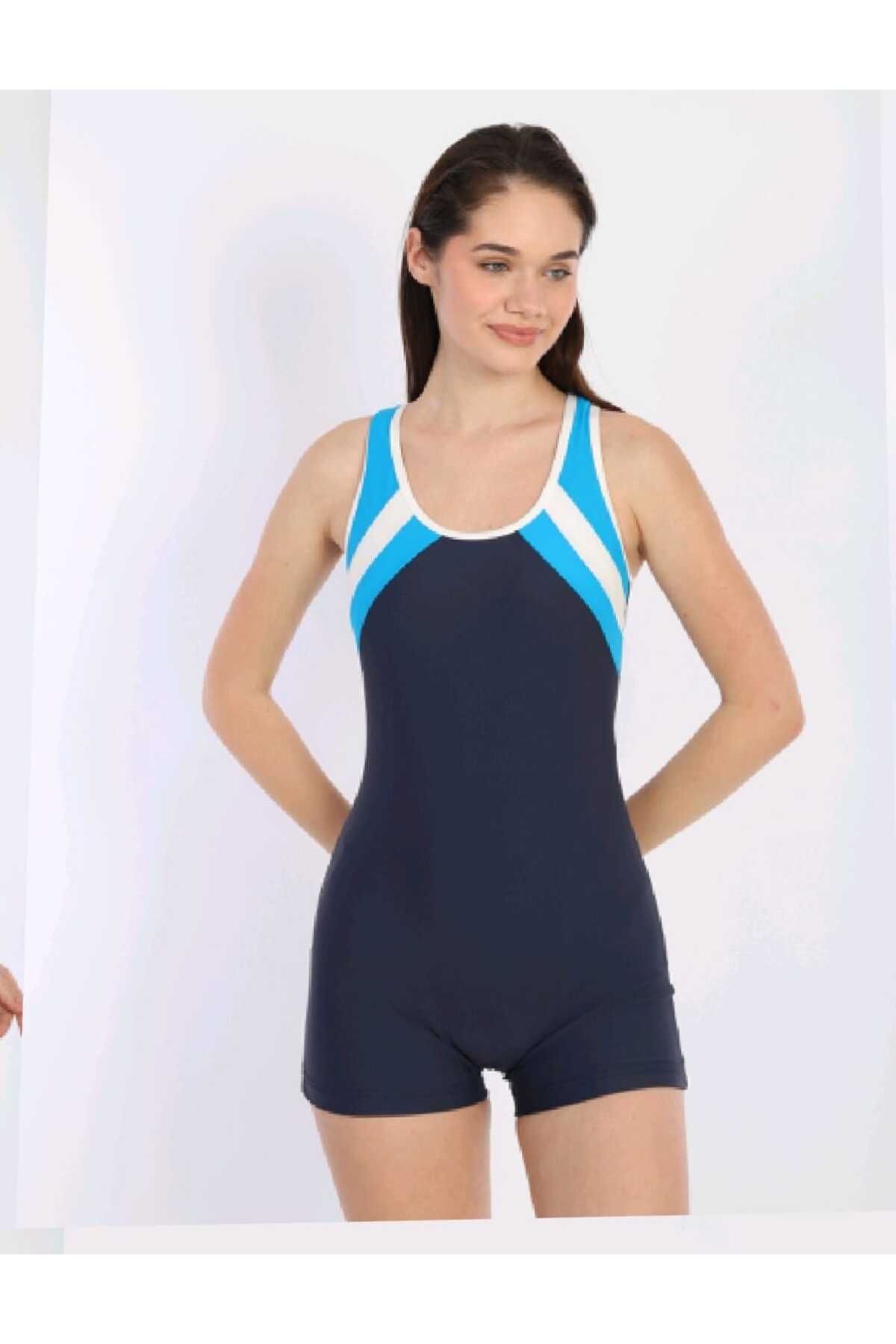 Kadın Likralı Şortlu Tek Parça Birleşik Elbiseli Mayo Kadın Likralı Şortlu Tek Parça Birleşik Elbiseli Mayo 3940 42