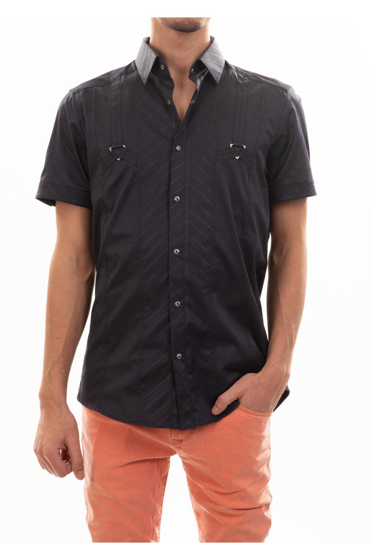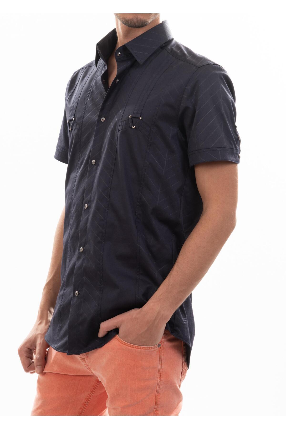 Metal Aksesuarlı Kısa Kollu Lacivert Gömlek Metal Aksesuarlı Kısa Kollu Lacivert Gömlek KG-71841 27
