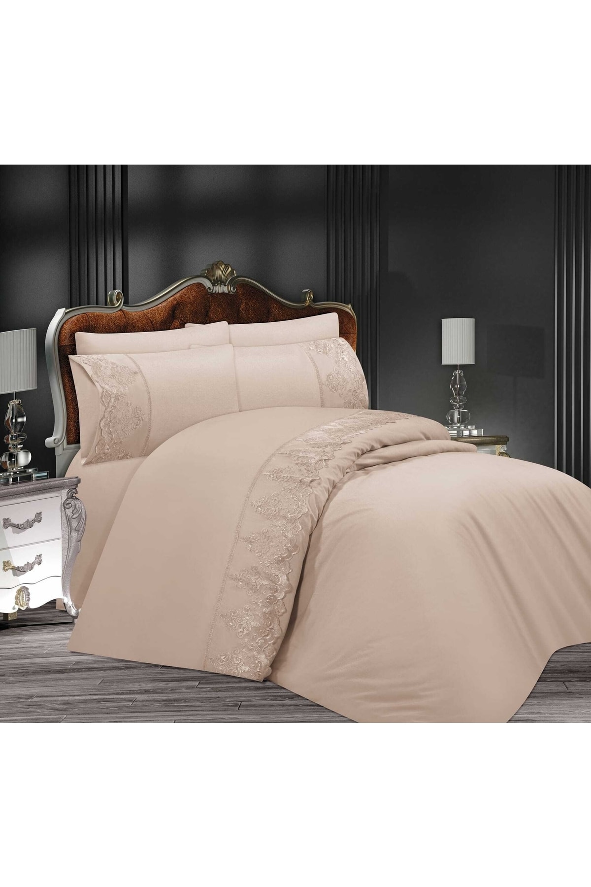 Açelya Çift Kişilik Nevresim Takımı %100 Pamuklu Kumaş Fransız Güpürlü Açelya Çift Kişilik Nevresim Takımı %100 Pamuklu Kumaş Fransız Güpürlü ÇB تک سایز