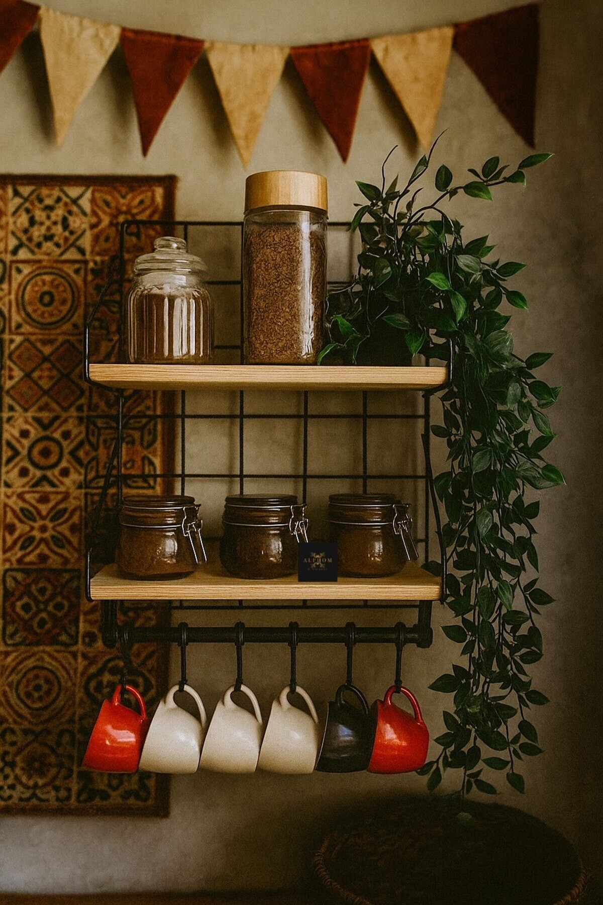 Mutfak Rafı Kahve Köşesi 51x13 Demir 6 Adet Fincan Askısı Ücretsiz Mutfak Rafı Kahve Köşesi 51x13 Demir 6 Adet Fincan Askısı Ücretsiz 9797-uç تک سایز