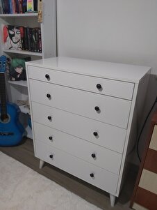 Şifonyer Parlak Beyaz 5 Çekmeceli Country Şifonyer Komodin Ahşap Şifonyer Parlak Beyaz 5 Çekmeceli Country Şifonyer Komodin Ahşap SFY-01 تک سایز