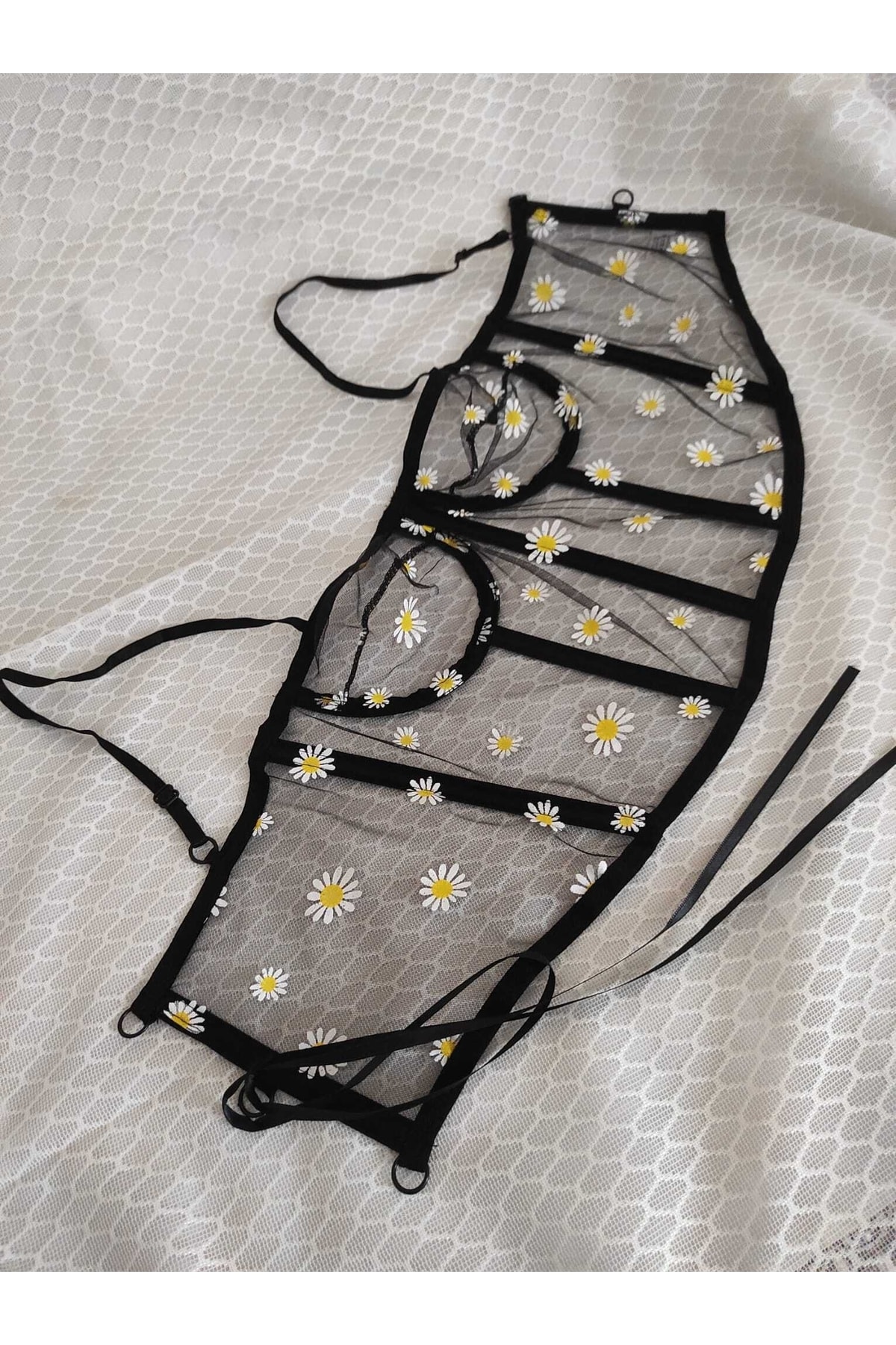 Kadın Siyah Papatyalı Fantezi Sütyen Külot Takımı - Fantezi Iç Giyim Kadın Siyah Papatyalı Fantezi Sütyen Külot Takımı - Fantezi Iç Giyim AKT063467 L/XL