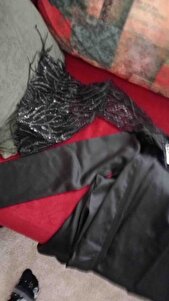 Siyah Kolları Tüylü Pul Detay Saten Matmazel Abiye Siyah Kolları Tüylü Pul Detay Saten Matmazel Abiye 2350MTMZL 48