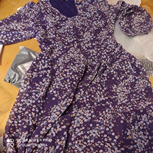 Büyük Beden V Yaka Beli Ve Kol Ağzı Lastikli Şifon Uzun Astarlı Mürdüm Elbise Büyük Beden V Yaka Beli Ve Kol Ağzı Lastikli Şifon Uzun Astarlı Mürdüm Elbise 86962800003 54