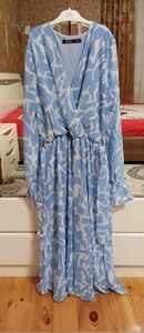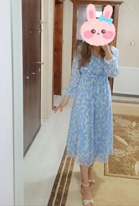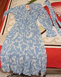 Kadın Mavi Desenli Şifon Elbise Kadın Mavi Desenli Şifon Elbise RSSN32 2XL