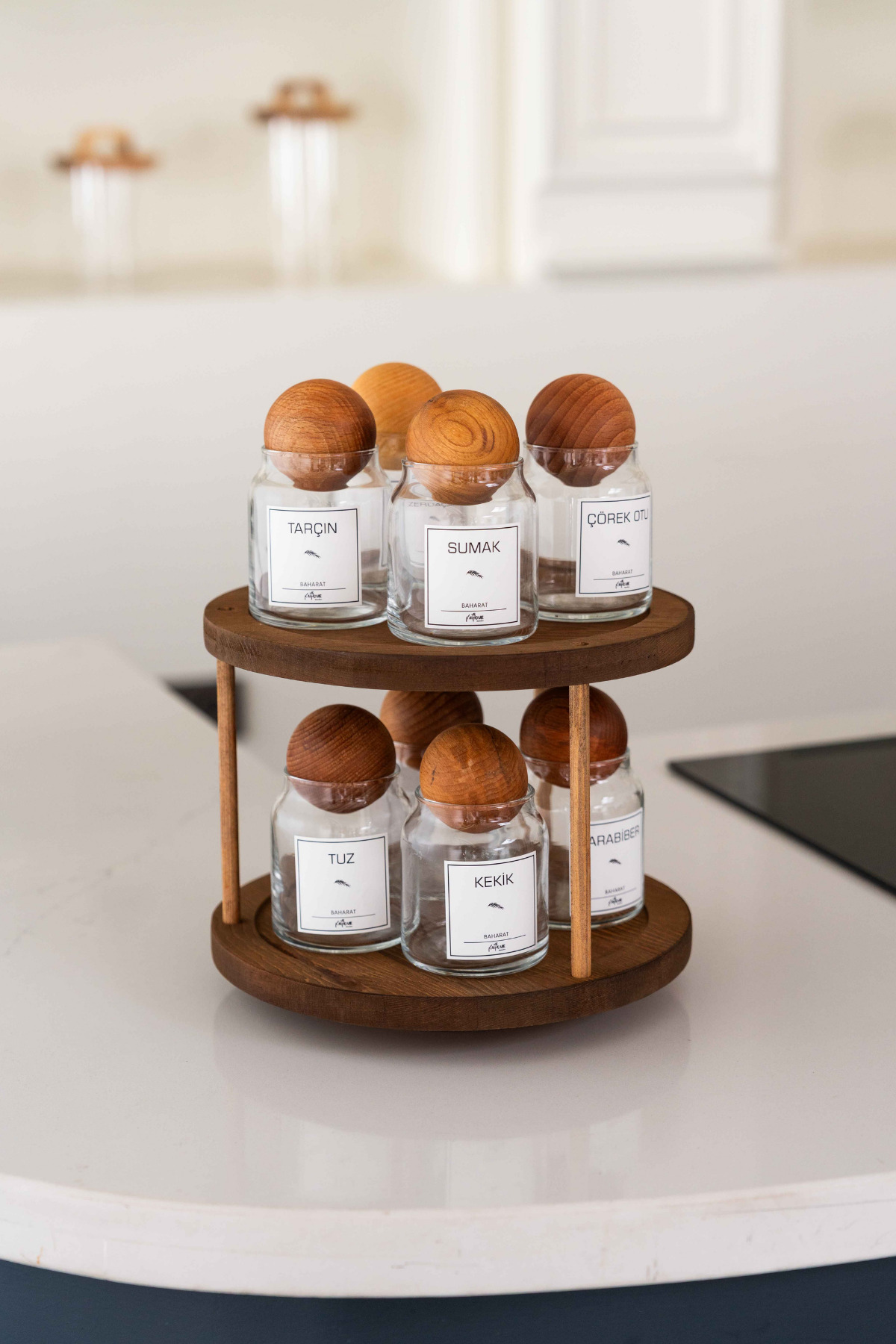 6'lı Top Kapaklı 300ml Cam Baharat Kavanozu + 6 Adet Ahşap Kaşık 6'lı Top Kapaklı 300ml Cam Baharat Kavanozu + 6 Adet Ahşap Kaşık top تک سایز