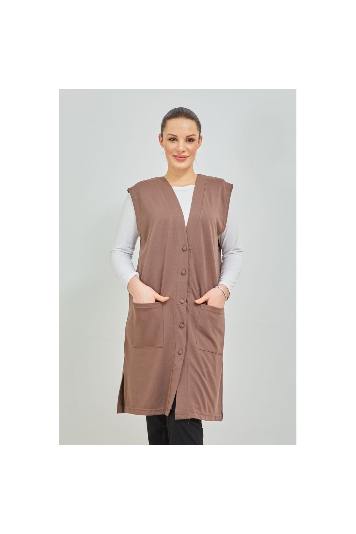 Kadın Siyah Uzun Cepli Düğmeli Penye Anne Büyük Beden Tunik Yelek Kadın Siyah Uzun Cepli Düğmeli Penye Anne Büyük Beden Tunik Yelek P469S1785 3XL