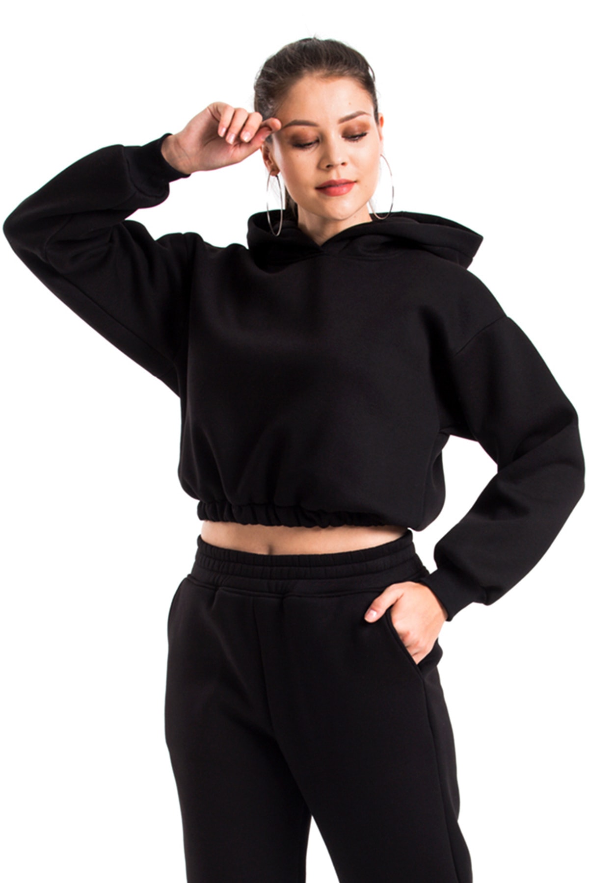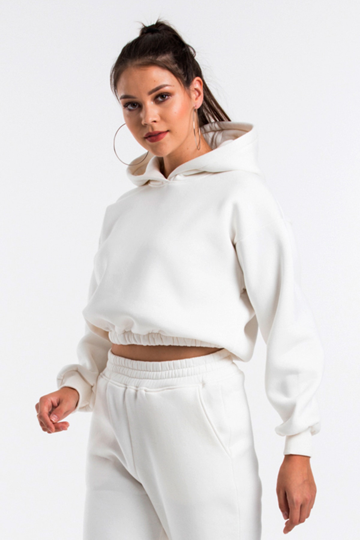 Kapüşonlu Crop Sweatshirt Kapüşonlu Crop Sweatshirt YWW22SDSWLAB L