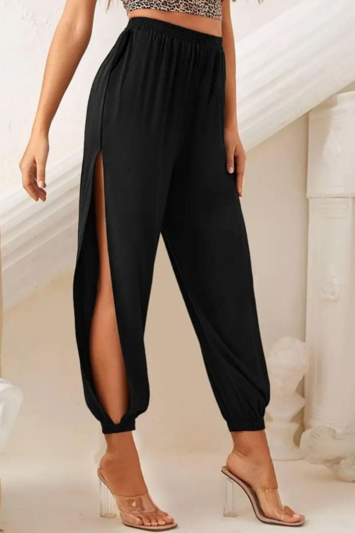 Siyah Yırtmaçlı Yoga Dans Pantolon Şalvar Siyah Yırtmaçlı Yoga Dans Pantolon Şalvar YRTMCSLVR2 M