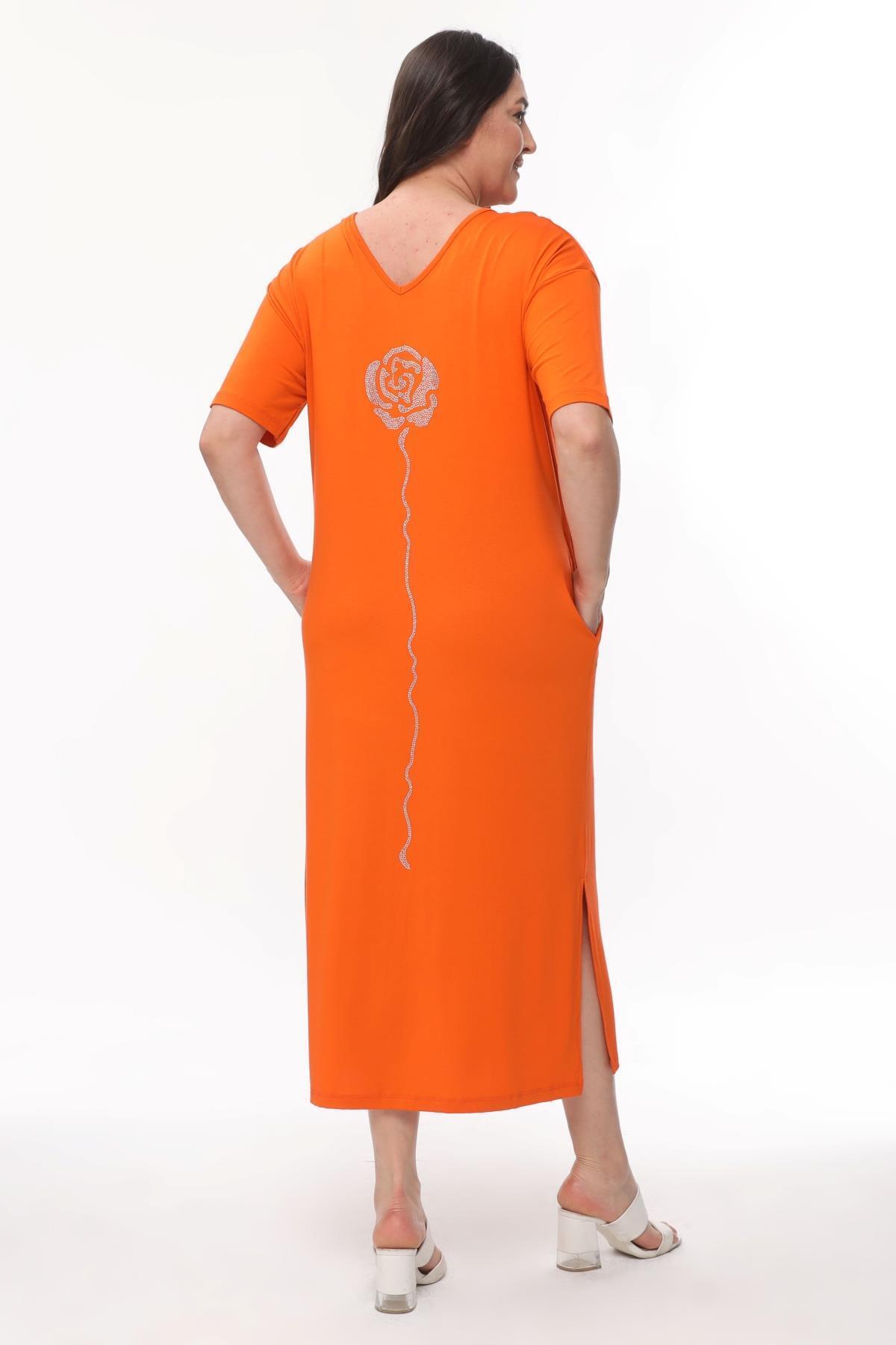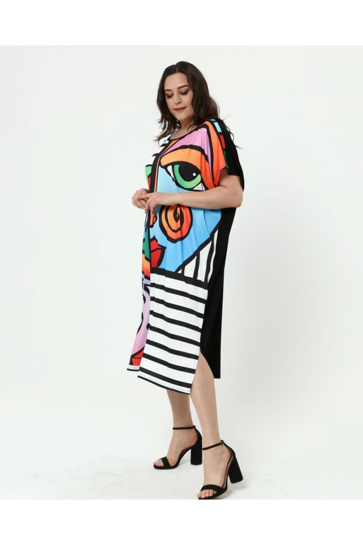Kadın Büyük Beden Rahat Yarasa Kol Dijital Baskılı Elbise Kadın Büyük Beden Rahat Yarasa Kol Dijital Baskılı Elbise 6578 3XL