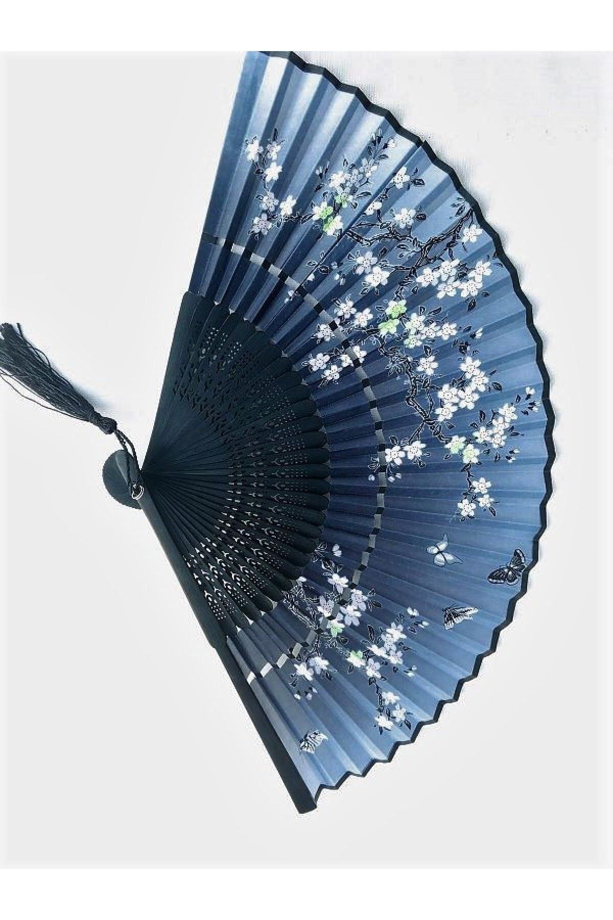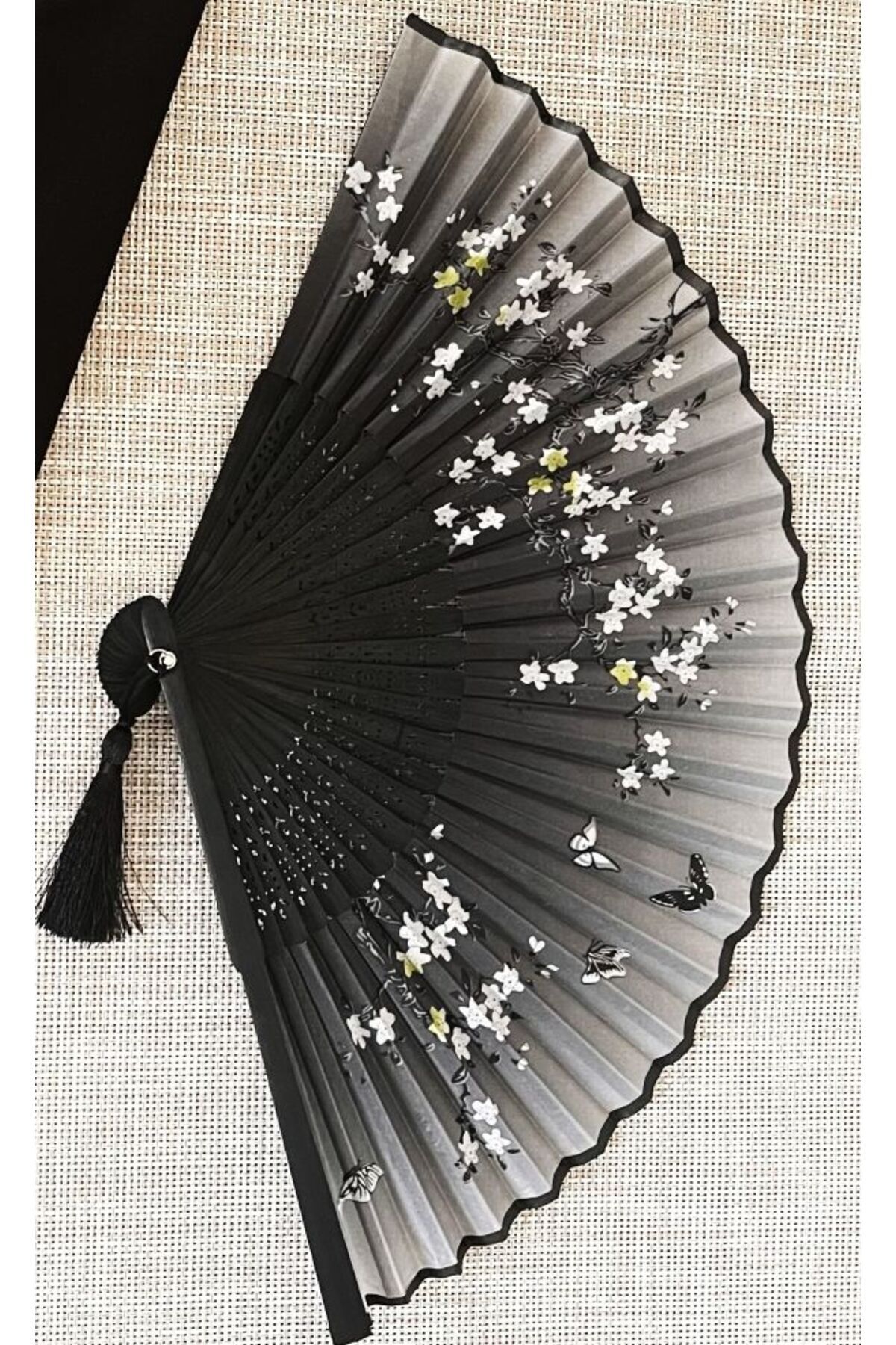- Siyah Çiçek Desenli Şık Yelpaze - Siyah Çiçek Desenli Şık Yelpaze E100 تک سایز