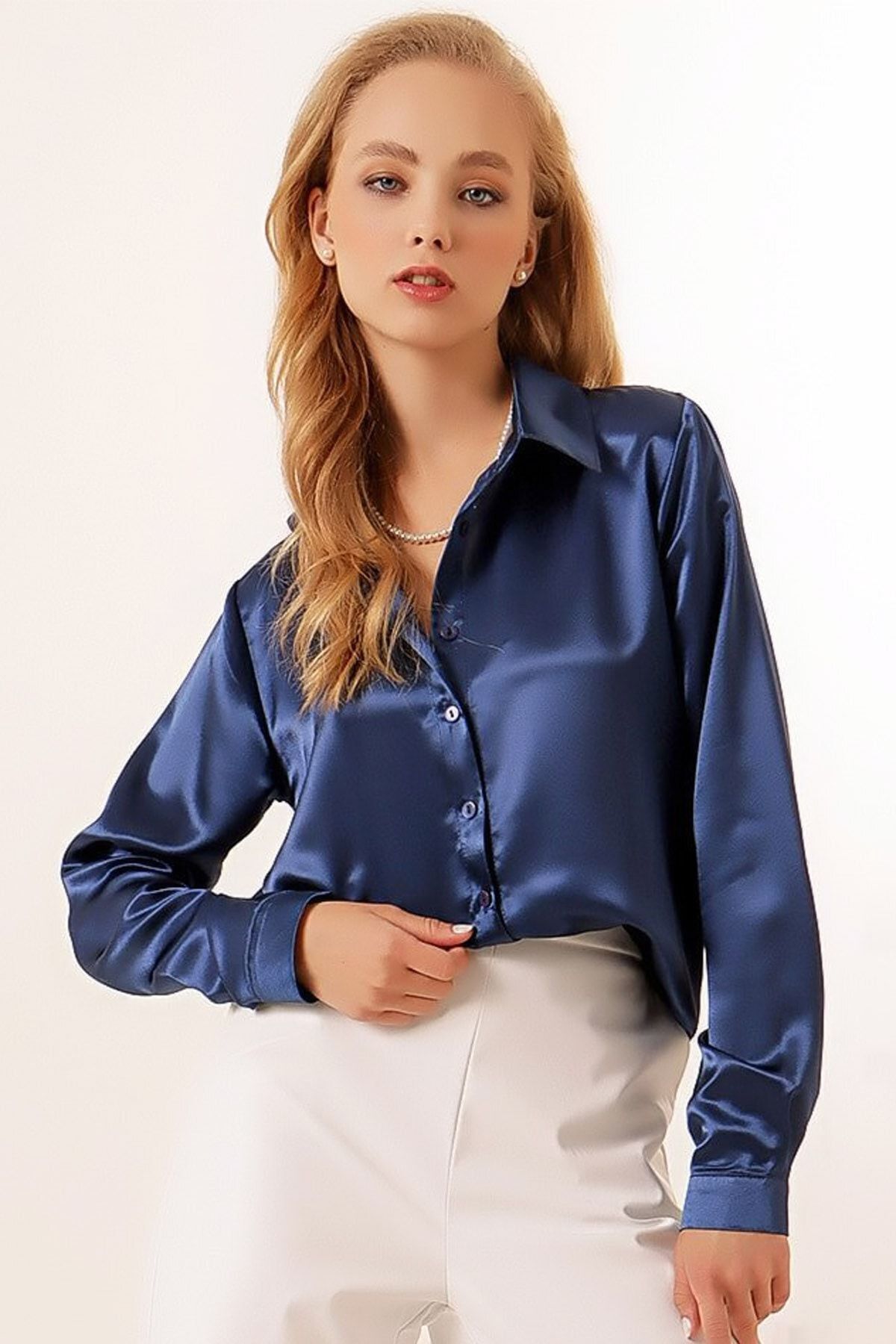 Büzgü Detaylı Saten Gömlek Büzgü Detaylı Saten Gömlek SHQ-60682 44