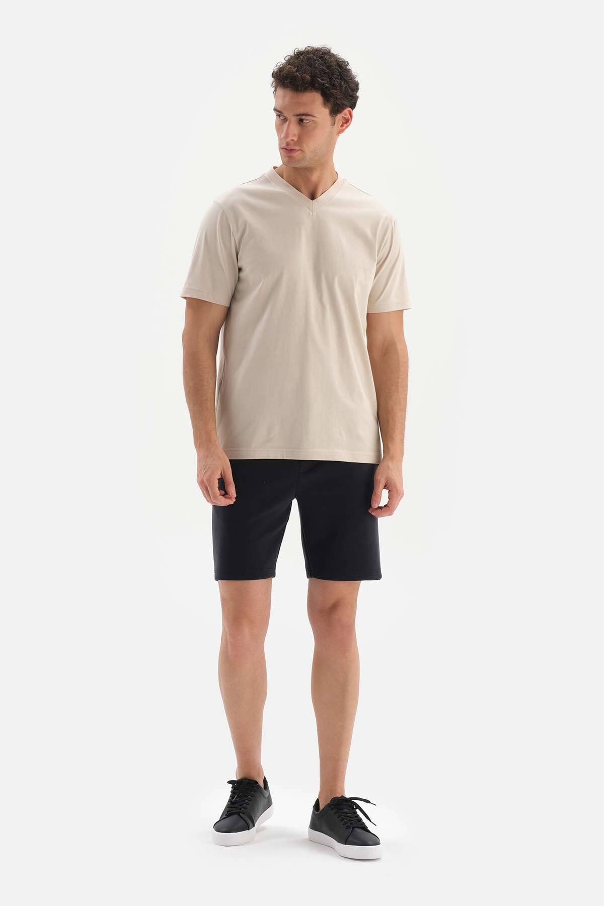 Bej V Yaka Basic Supima T-Shirt Bej V Yaka Basic Supima T-Shirt 23SM12174ME_BEJ XL