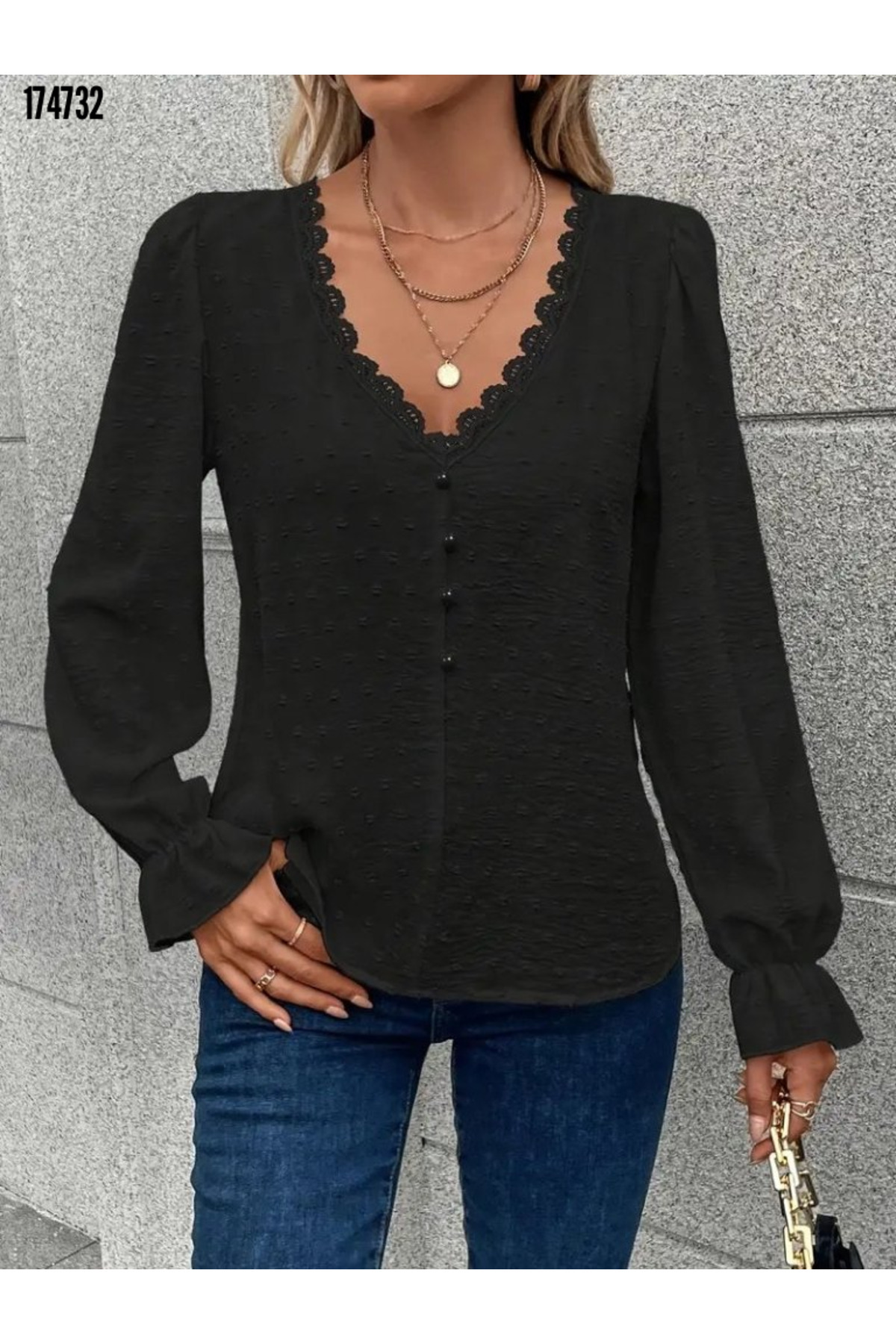 Çiçek Desenli Önü Tokalı Bürümcük V Yaka Bluz Çiçek Desenli Önü Tokalı Bürümcük V Yaka Bluz 1010424.00001 XL