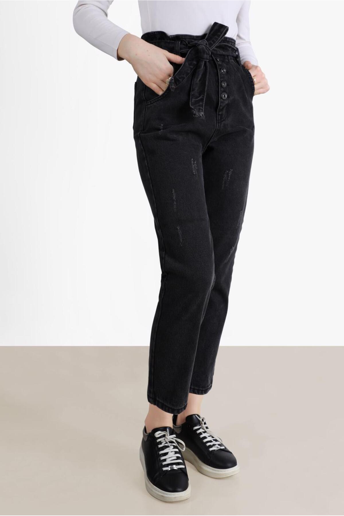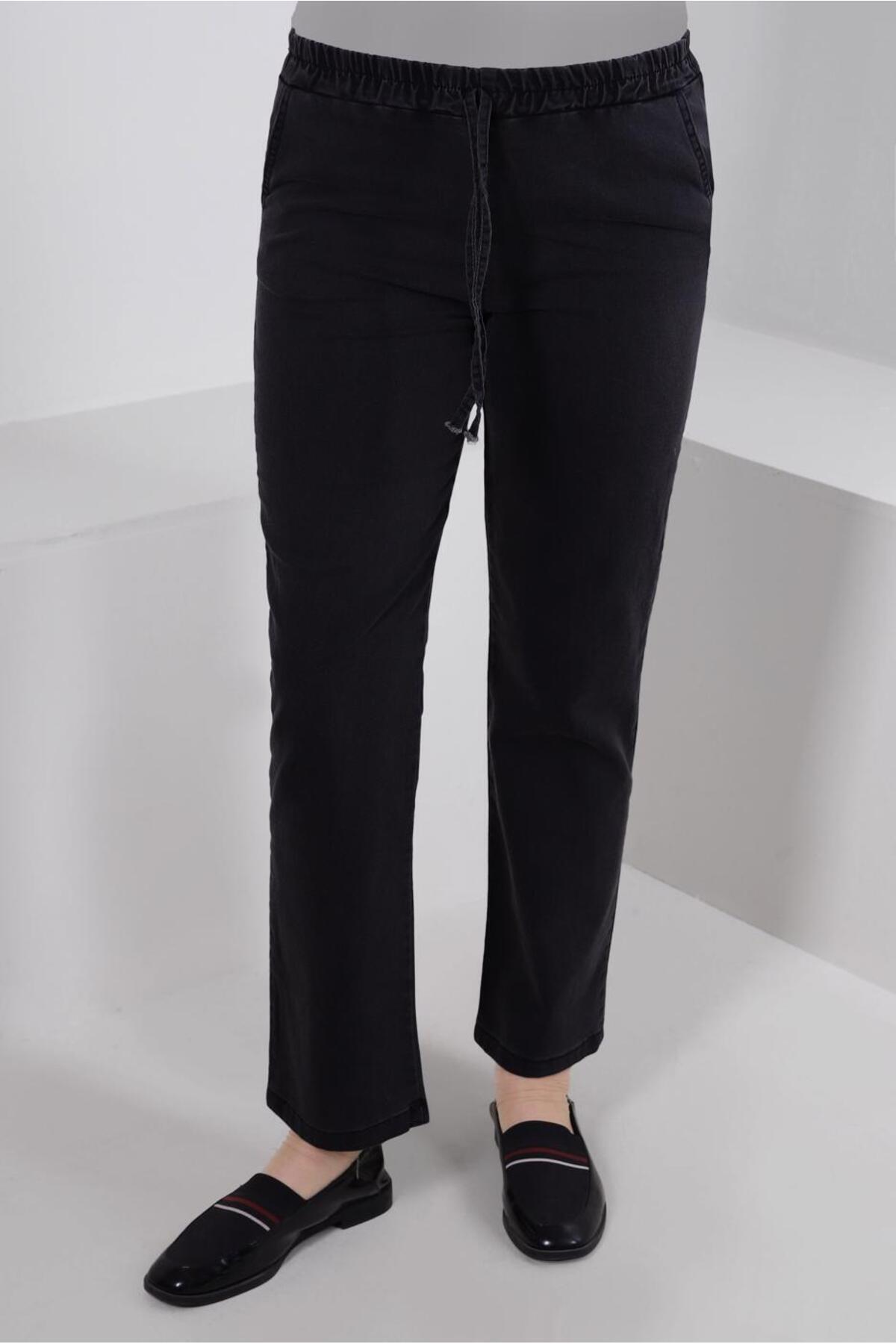 KADIN SİYAH BELİ LASTİKLİ DÜZ PAÇA DENİM PANTOLON T 2315 KADIN SİYAH BELİ LASTİKLİ DÜZ PAÇA DENİM PANTOLON T 2315 23YPNTTR2315 42