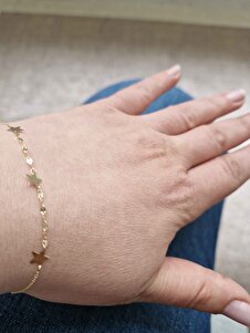 Aynalı Zincirli Yıldız Altın Bileklik Aynalı Zincirli Yıldız Altın Bileklik 14KNY2365 19 cm
