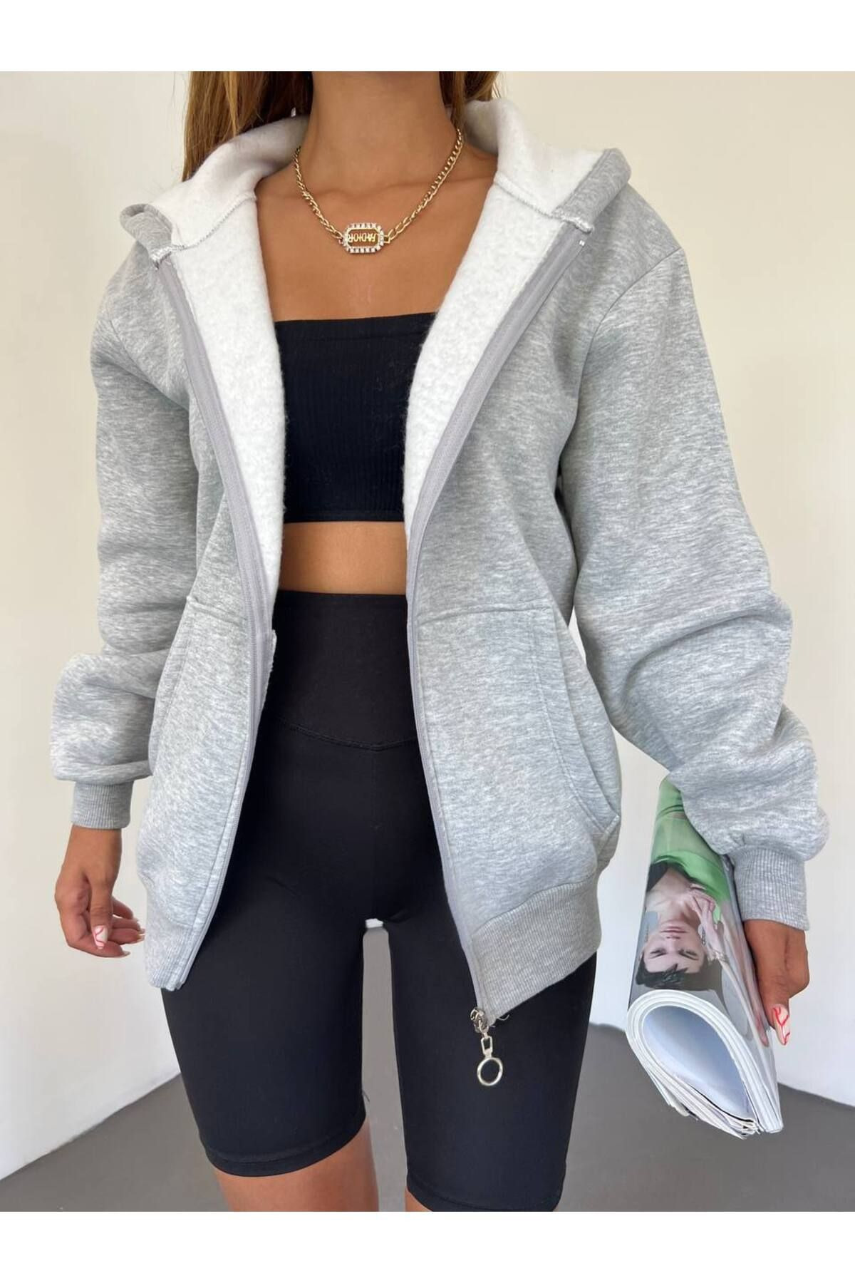 Kadın Gri Fermuarlı Polar Kadın Gri Fermuarlı Polar VSLT3719BTL99GR 6XL