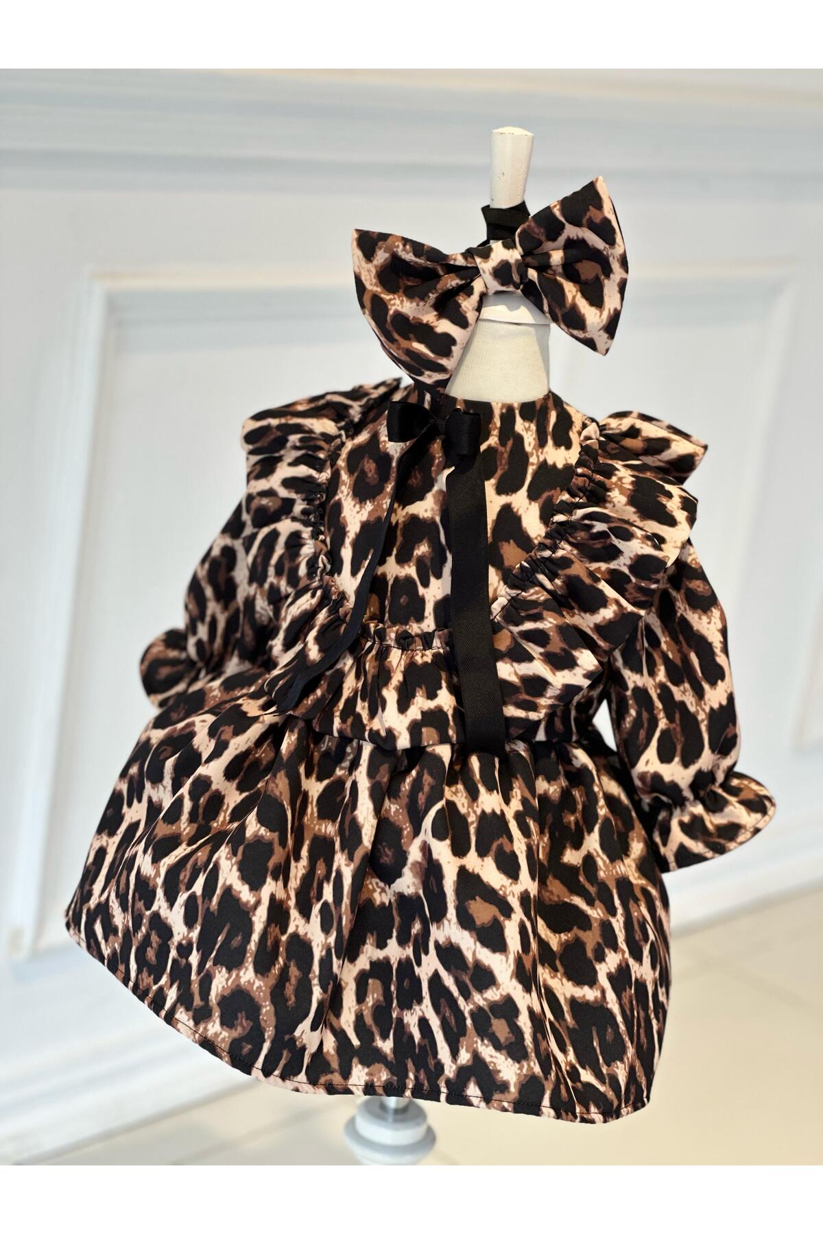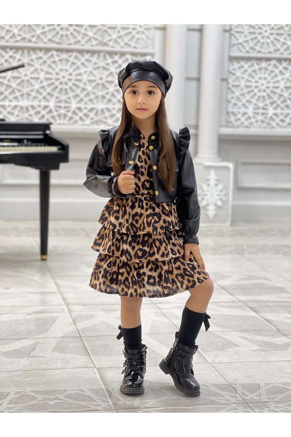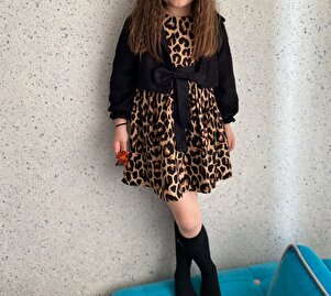 Kız Çocuk Fiyonk Kemerli Leopar Elbise+Kaşe Ceket+Kaşe Bere-23 Nisan Elbisesi-Bayramlık Kız Çocuk Fiyonk Kemerli Leopar Elbise+Kaşe Ceket+Kaşe Bere-23 Nisan Elbisesi-Bayramlık LEO02 13-14 Yaş