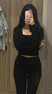 Kadın Siyah Kare Yaka Uzun Kollu Crop Bluz Kadın Siyah Kare Yaka Uzun Kollu Crop Bluz LE002 L
