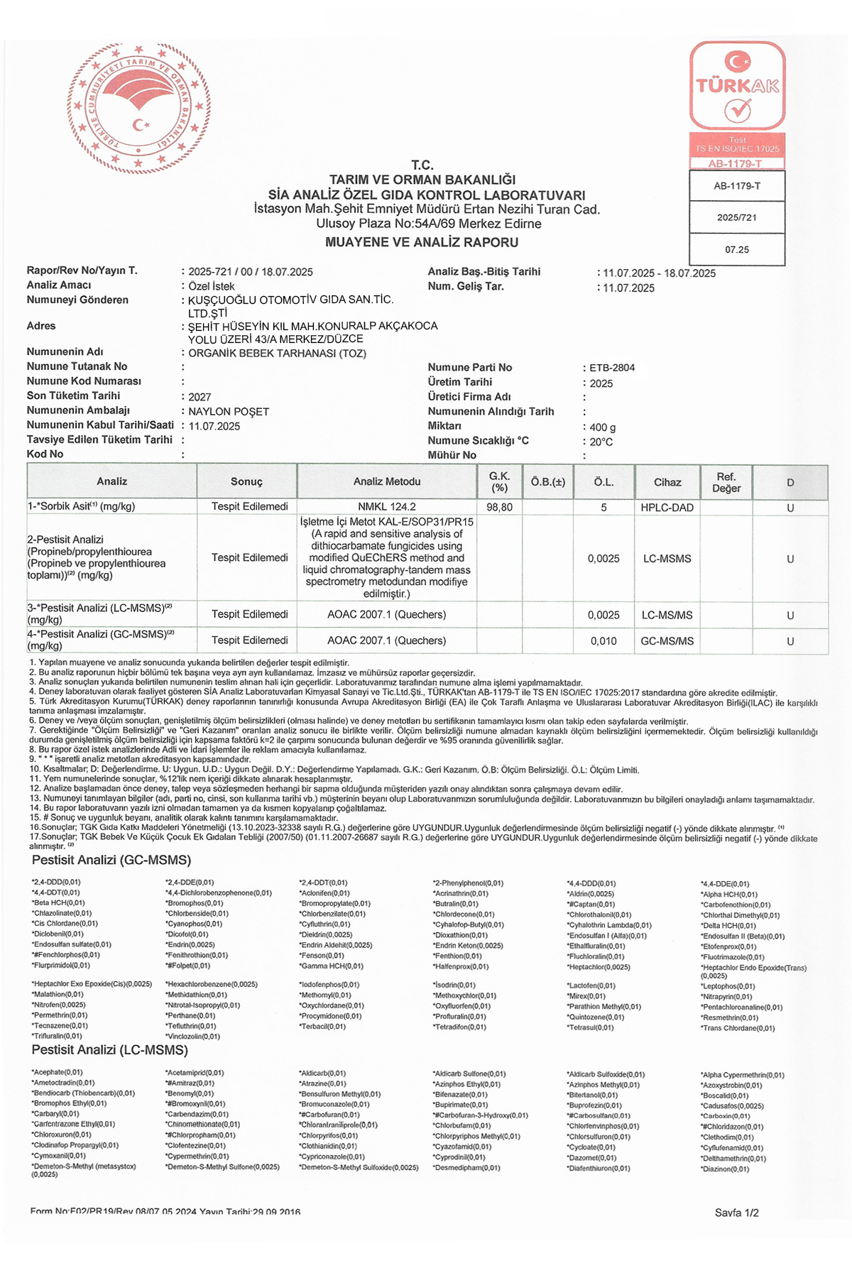 Organik Bebek Tarhanası 300 Gr Pestisit Raporlu Organik Bebek Tarhanası 300 Gr Pestisit Raporlu 8684122480128 تک سایز