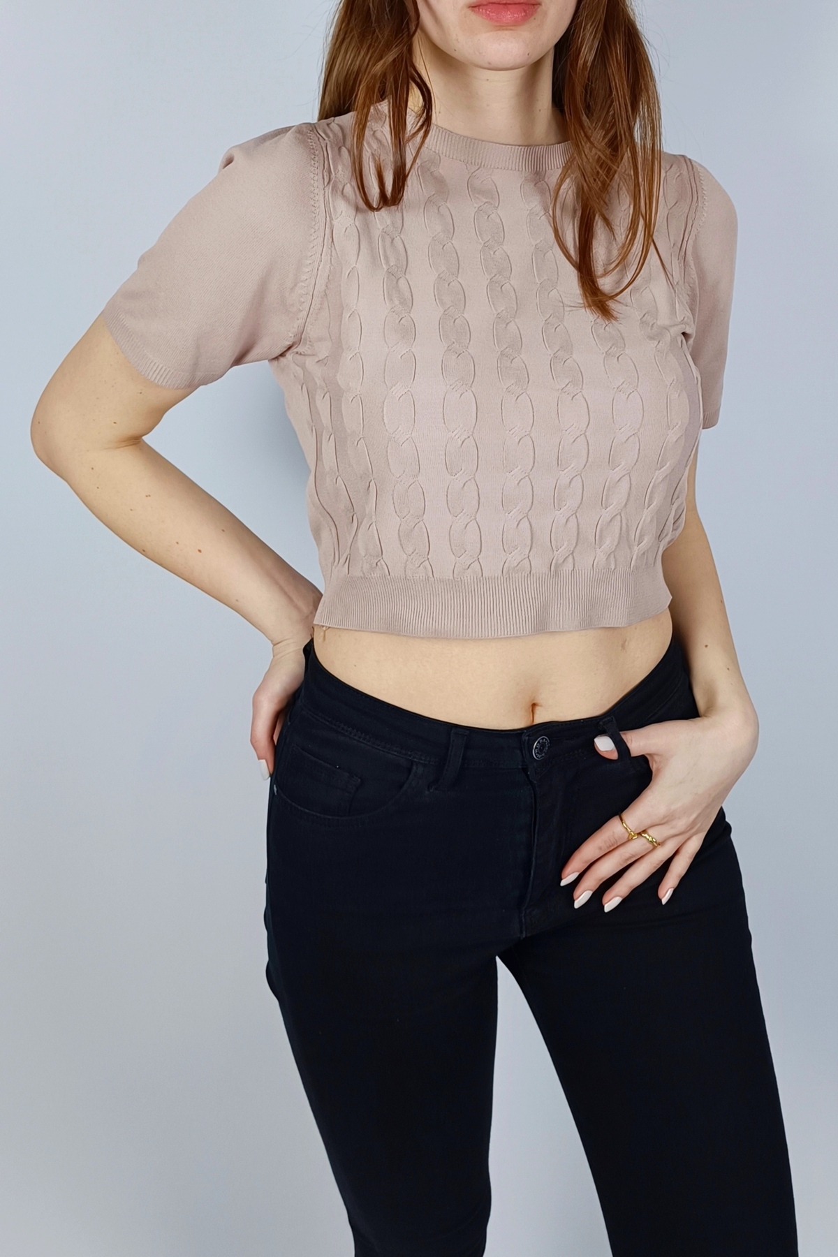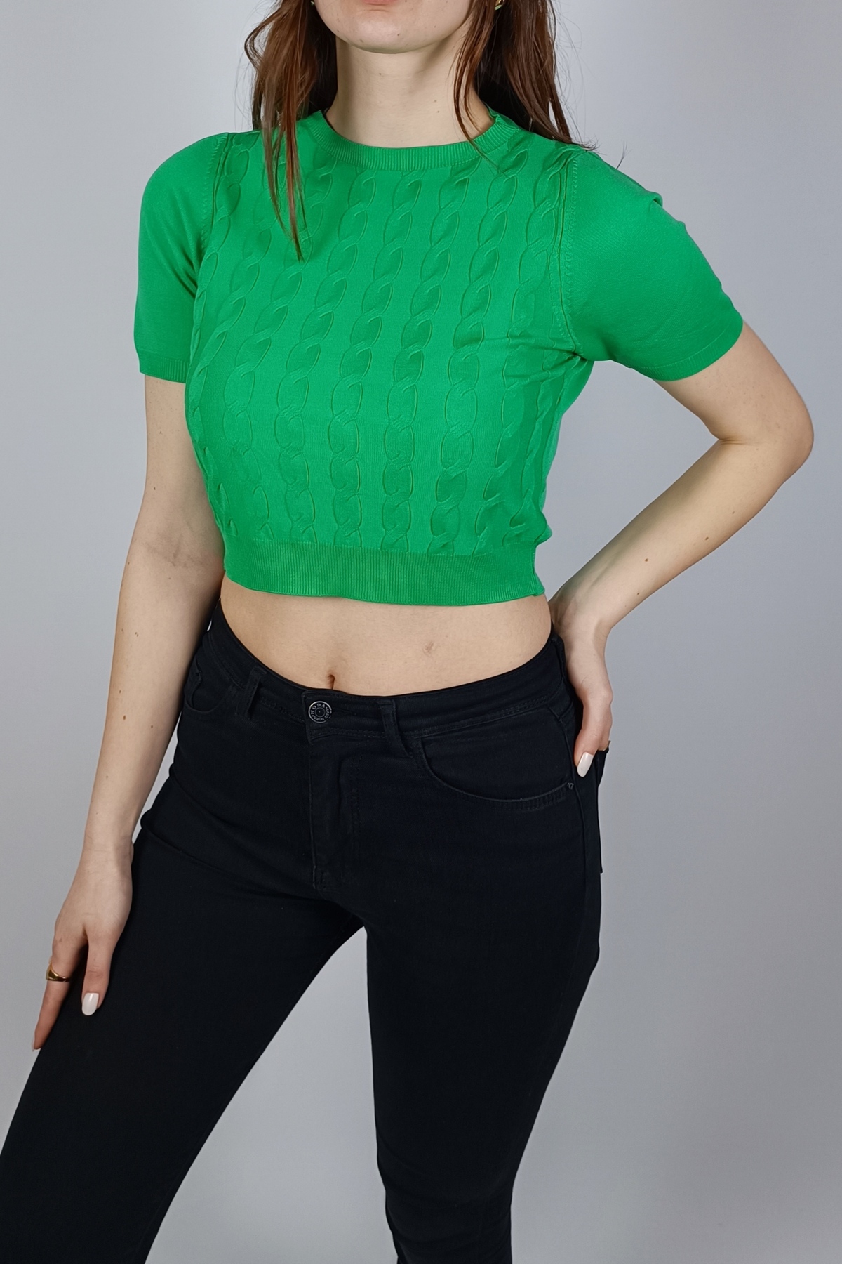 Kadın Kabartma Desenli Saks Mavi Parlak Crop Bluz Kadın Kabartma Desenli Saks Mavi Parlak Crop Bluz FORST01CRP M